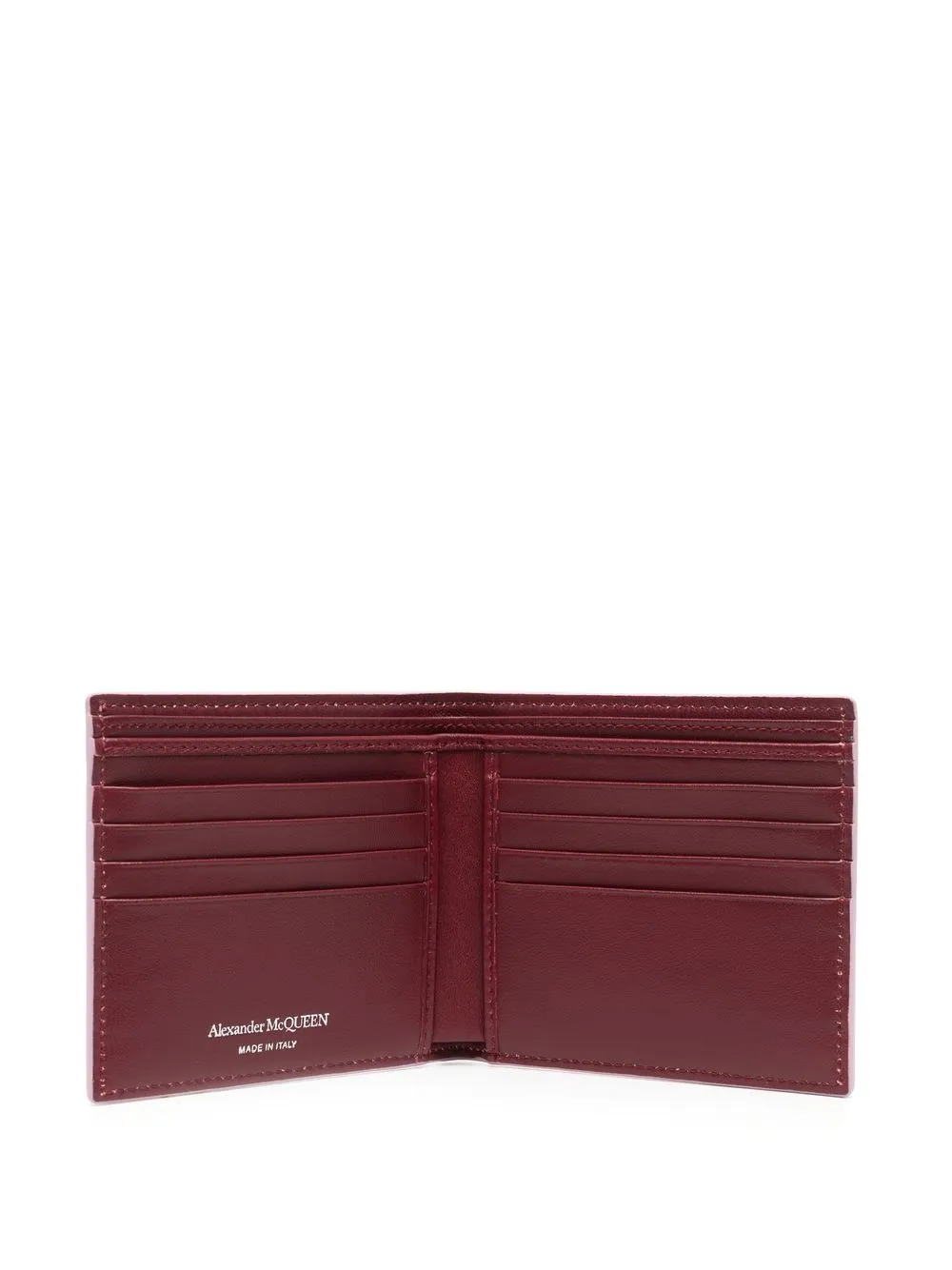 Púrpura lila, rojo oscuro, piel de becerro, diseño plegable, estampado Graffiti característico, compartimentos para tarjetas y compartimentos internos para billetes.