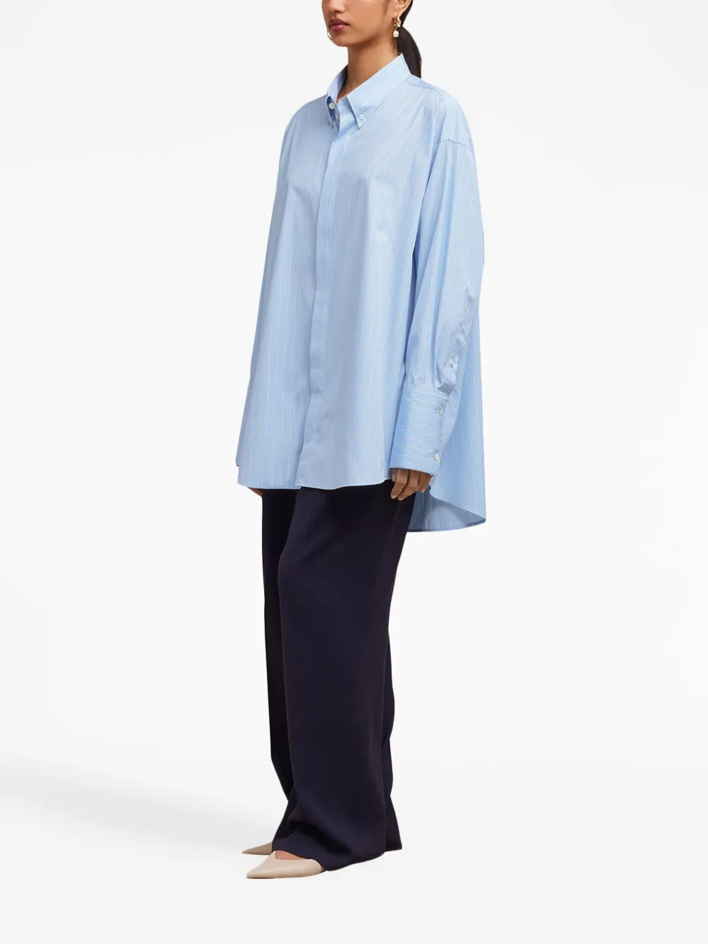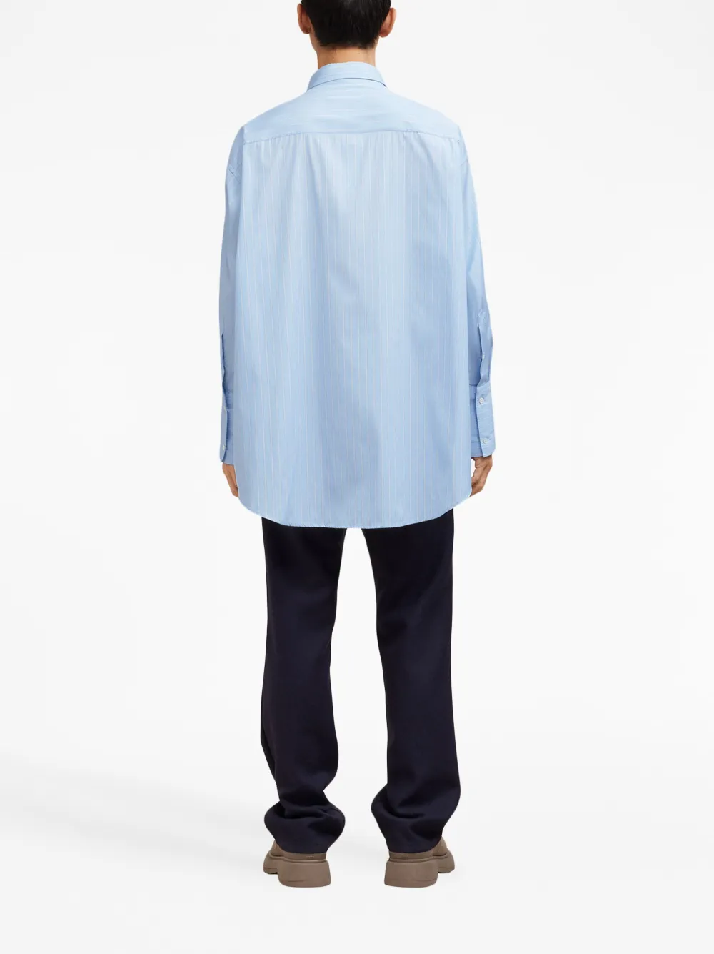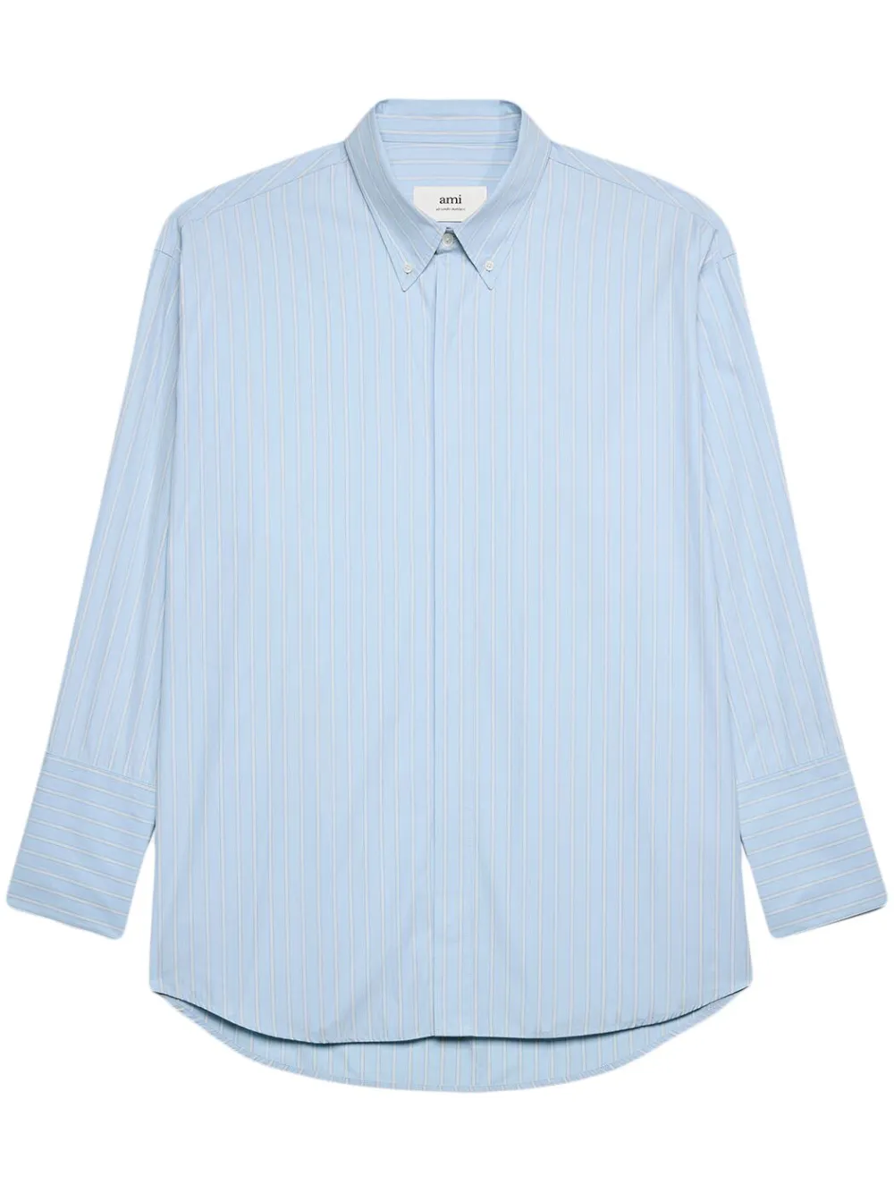 Azul, algodón, estampado a rayas, cuello clásico, manga larga, cierre con botones en la parte delantera y dobladillo redondeado. Por favor, ten en cuenta que este artículo es unisex y se vende en la talla estándar de hombre..