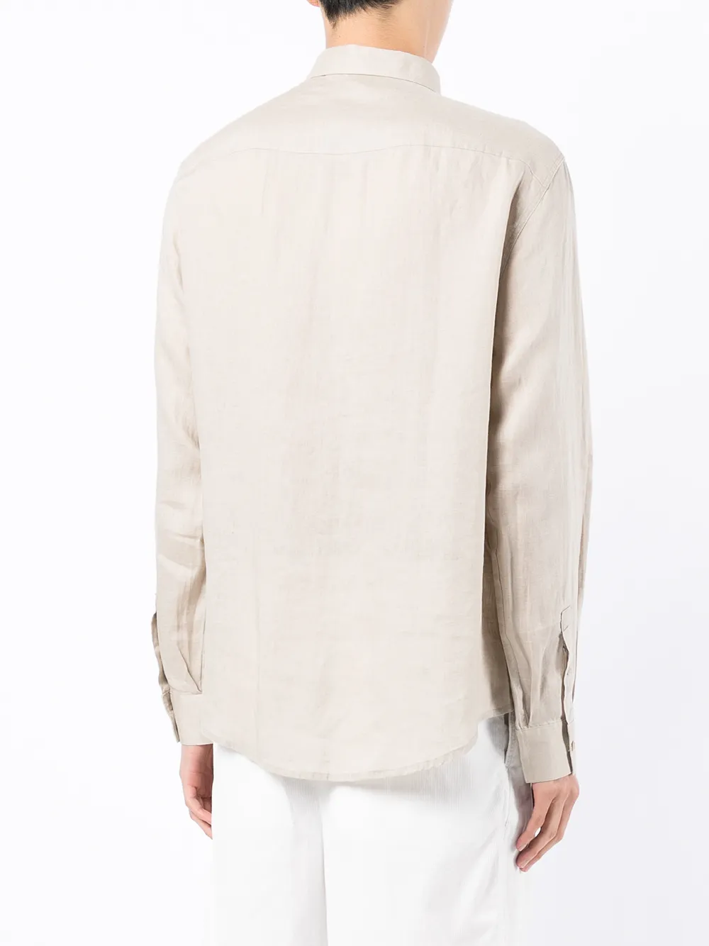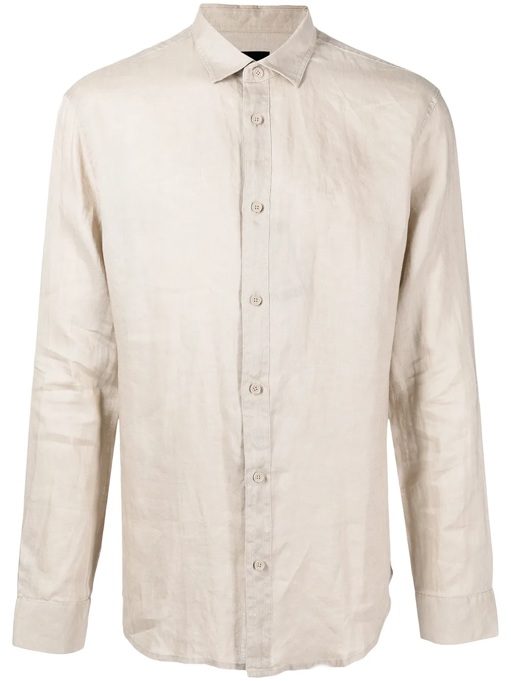 Cierre con botones en la parte delantera, cuello clásico, manga larga, puños con botón y dobladillo redondeado. Material: Lino.