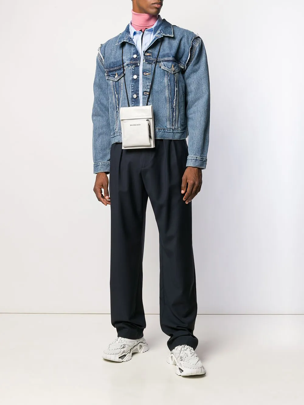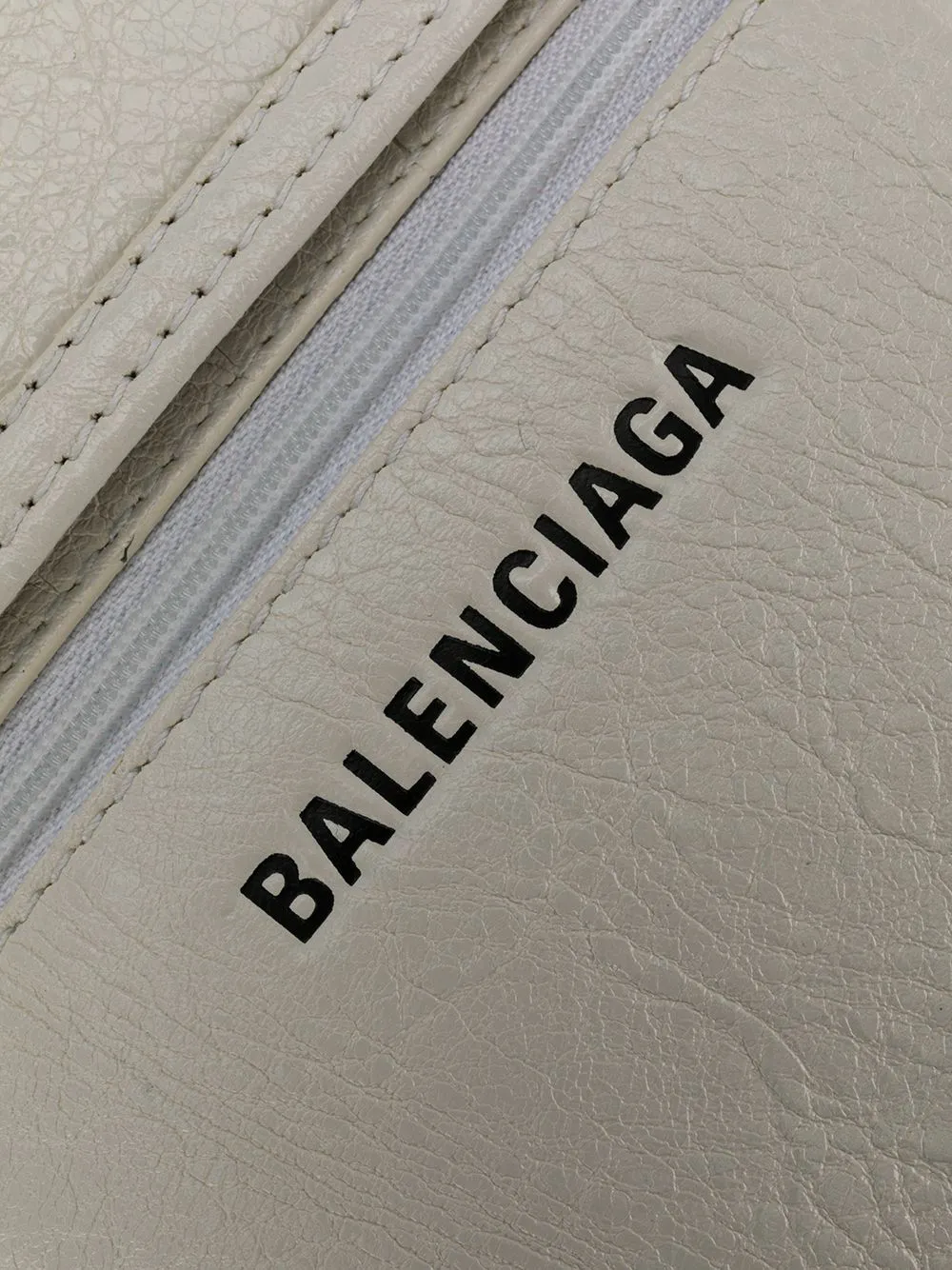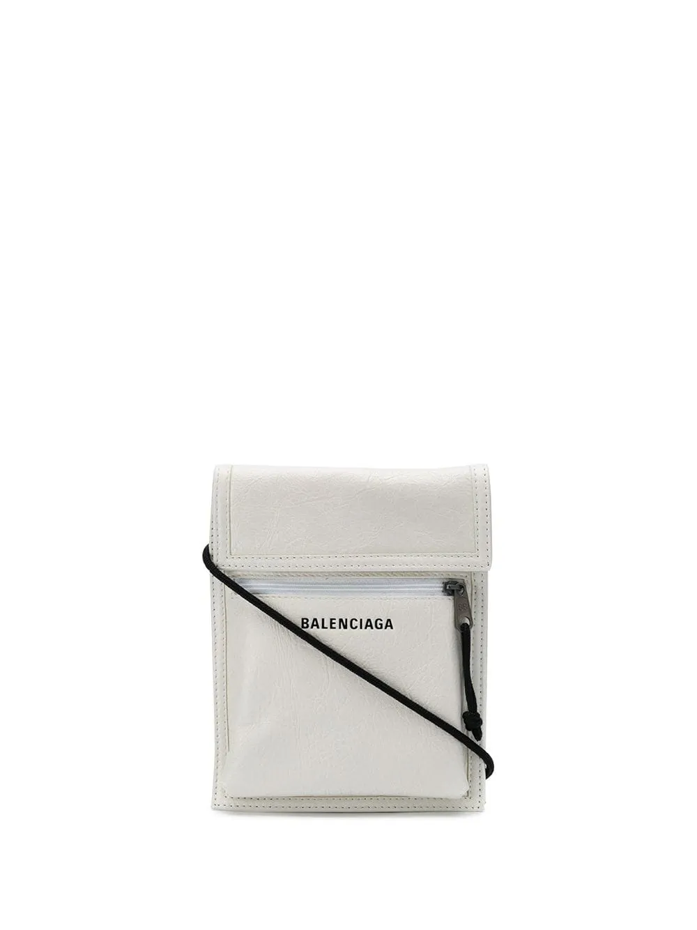 Bandolera Explorer en cuero de color blanco de Balenciaga con compartimento interno y parche del logo en el interior.