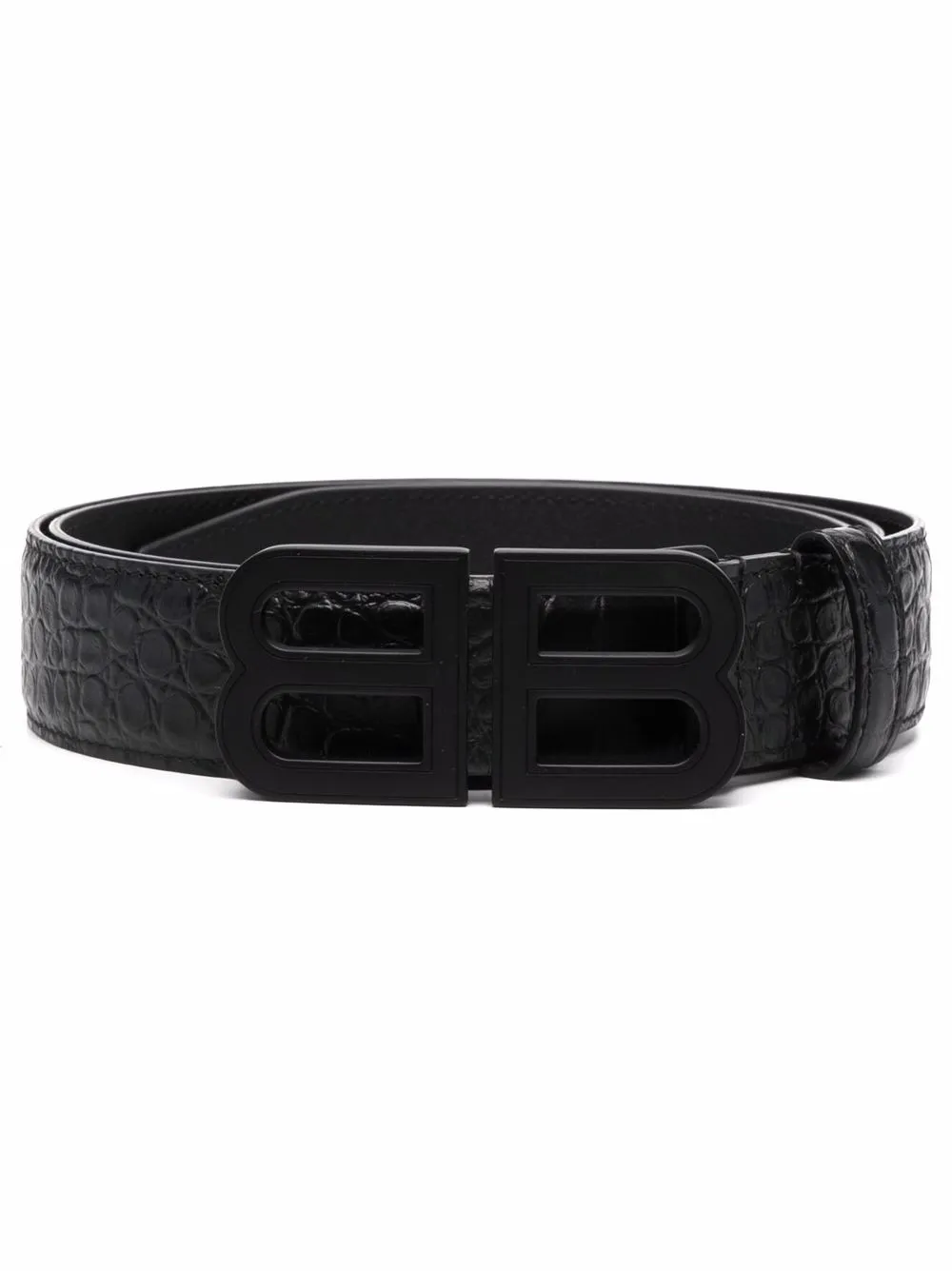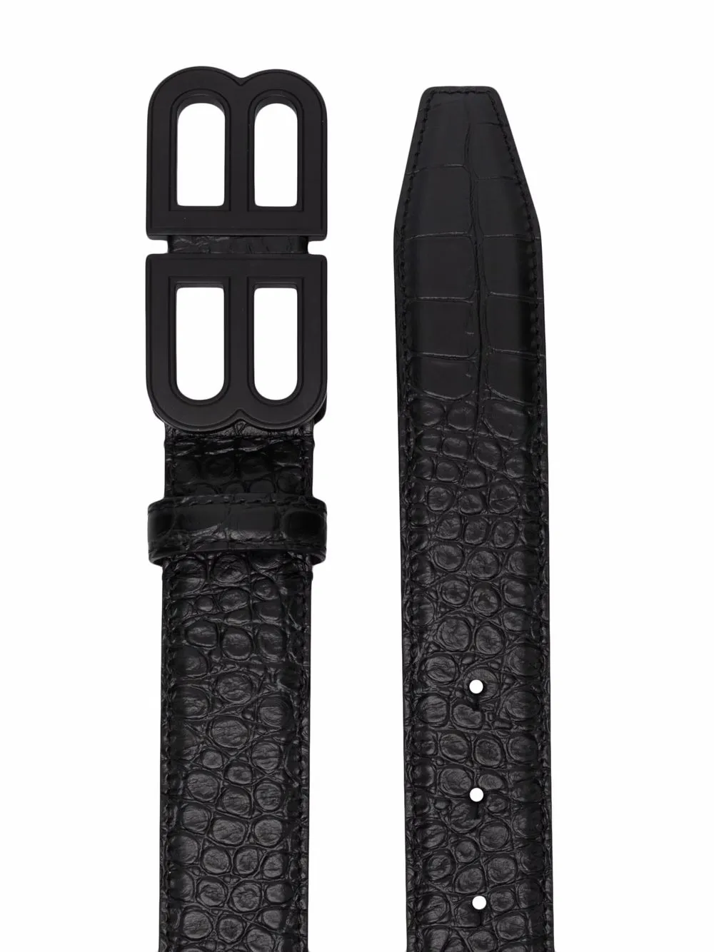 Efecto de piel de cocodrilo, hebilla con logo, agujeros perforados y diseño ajustable. Material: cuero.