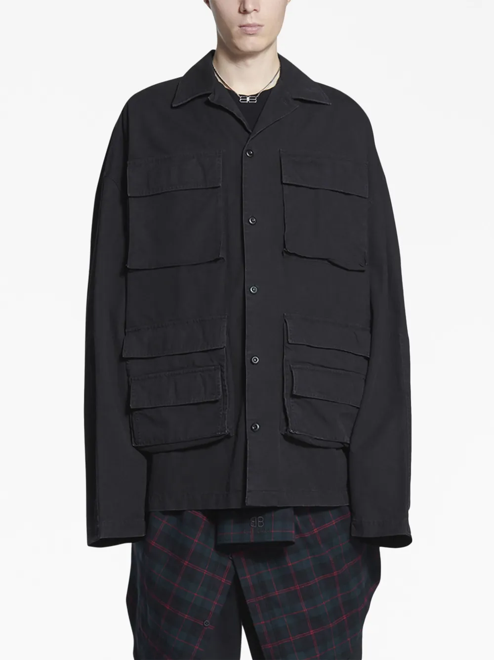 long-sleeve cotton shirt from BALENCIAGA featuring black, cotton, camp collar, front button fastening, long sleeves, four front flap pockets and straight hem. We’ve partnered with Good On You — an independent agency that rates how brands perform in relation to their impact on the planet, people and animals, with a multi-criteria rating simplified to a five points scale. In order to be awarded our conscious label, larger brands need to score a minimum of four out of five (‘Good’), while smaller brands must score at least three out of five (‘It’s a start’). This item comes from a brand rated four out of five (‘Good’) by Good on You. Please note, this is a brand-level rating and does not guarantee that this product is made with conscious materials.. Learn more about what makes a product Conscious on our Conscious Criteria page.