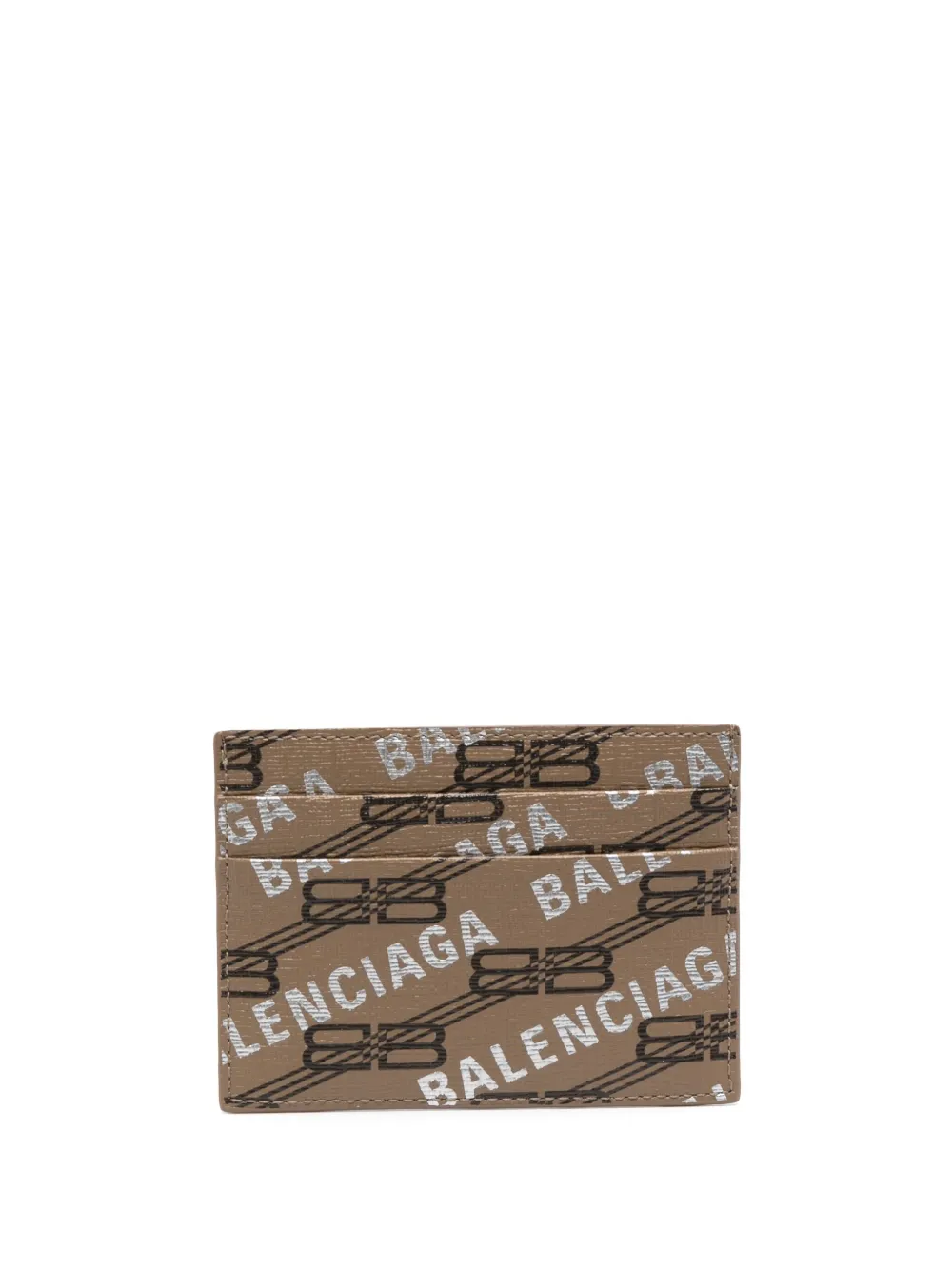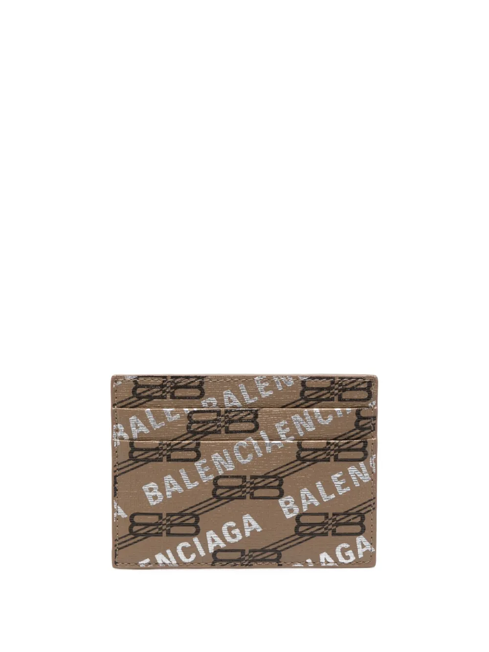 Beige, piel de becerro, motivo de monograma y compartimentos para tarjetas.