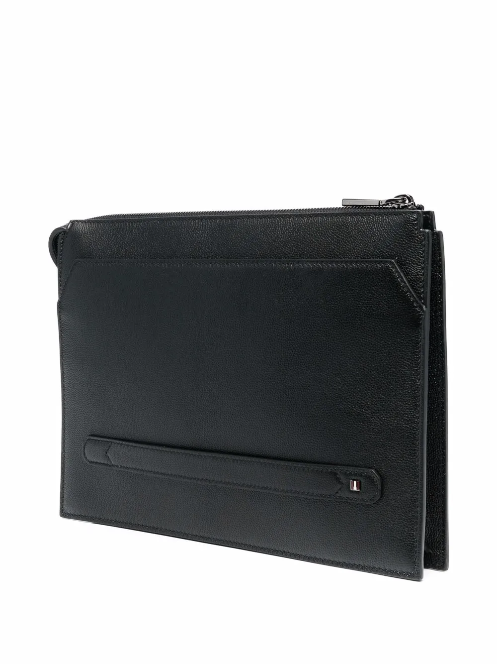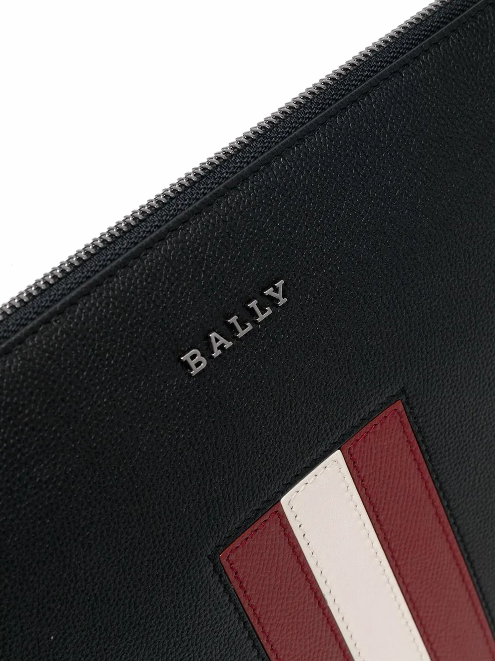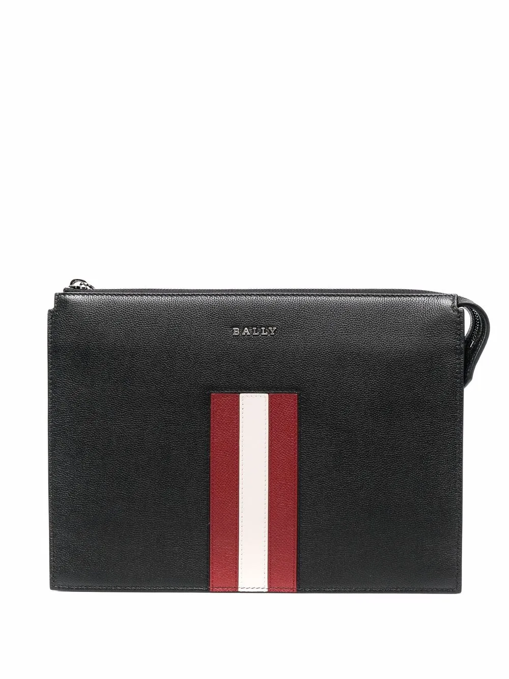 Detalle de rayas, placa del logo en tono plateado, cierre con cremallera en el tope y compartimento principal. Material: cuero.