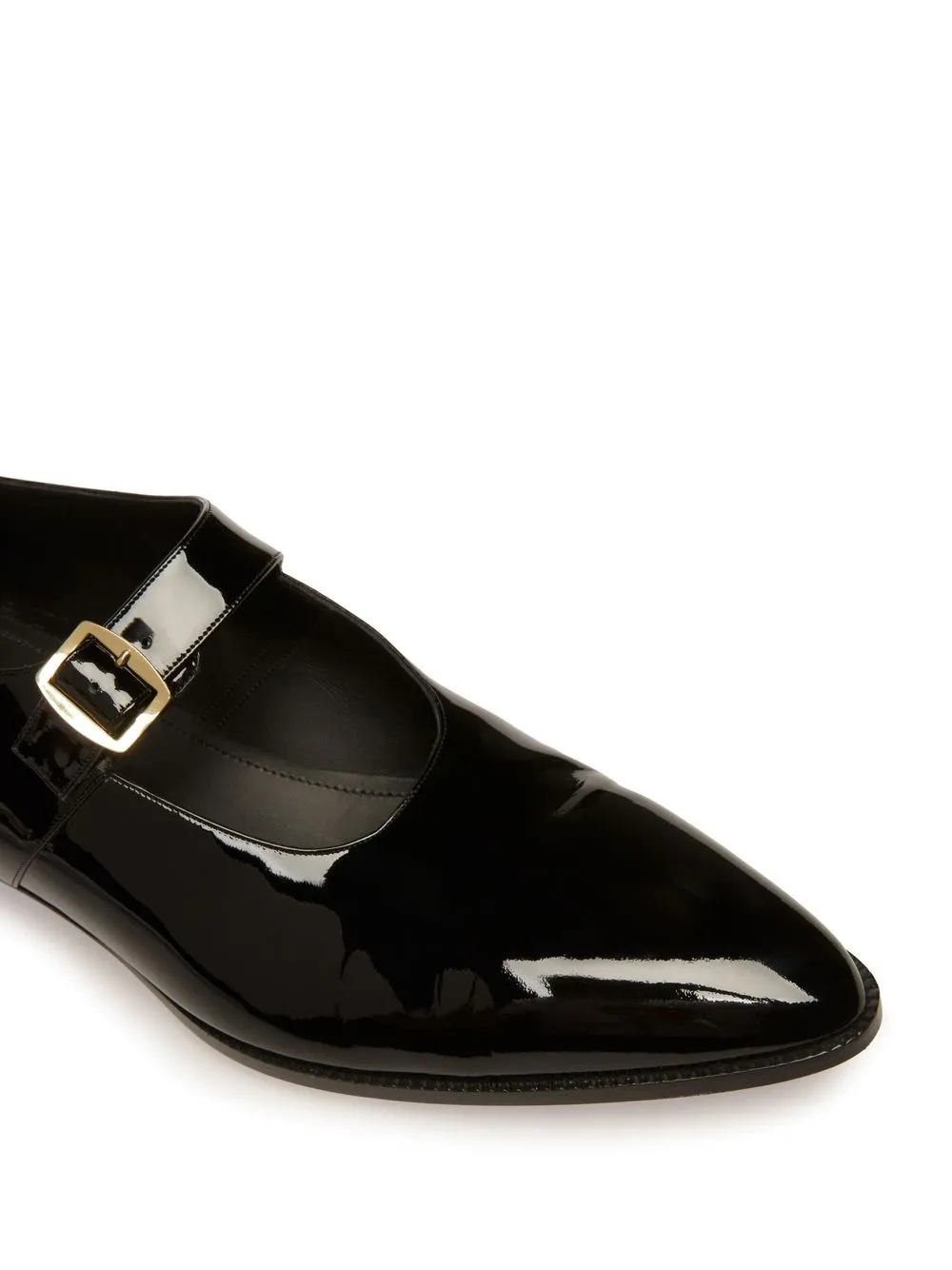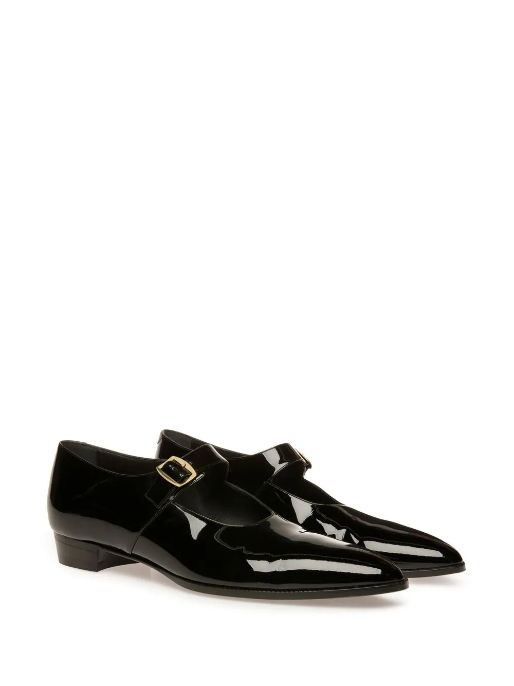 Negro, cuero, efecto pulido, puntera en punta, cierre con hebilla, plantilla de piel con logo y suela de cuero.