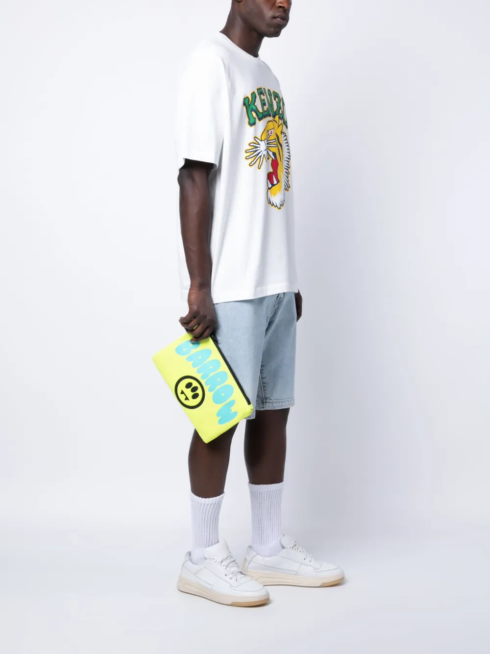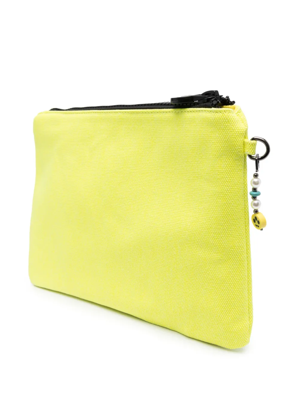 Amarillo plátano, algodón, estampado del logo en la parte delantera, detalle de charm, cierre con cremallera en el tope, compartimento principal y parche del logo en el interior.