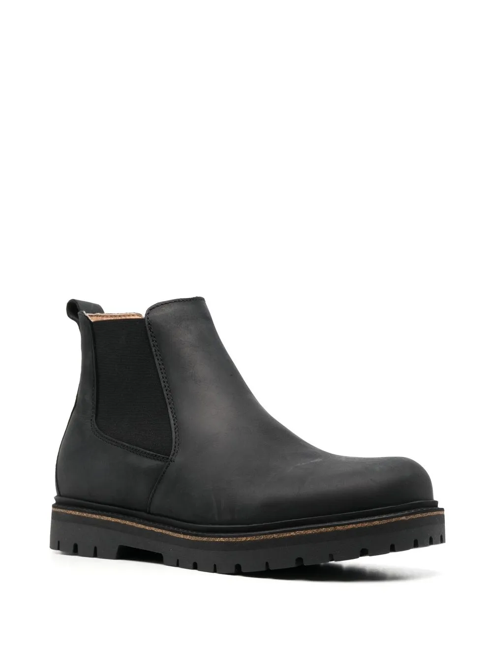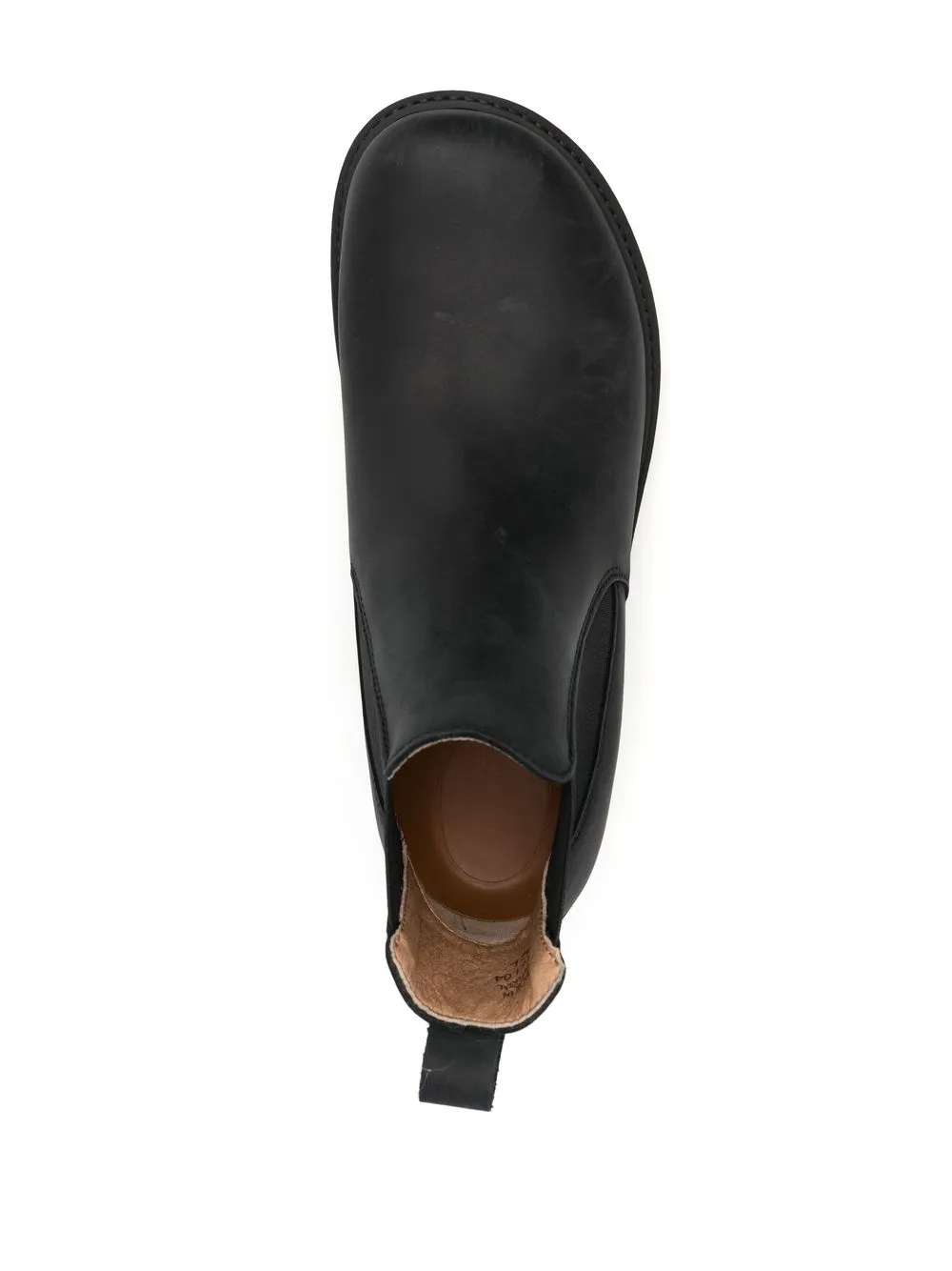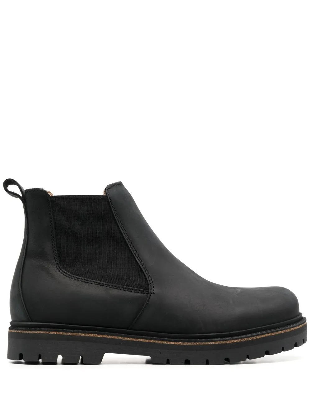 Negro, cuero, puntera redonda, paneles laterales elásticos, estilo slip-on