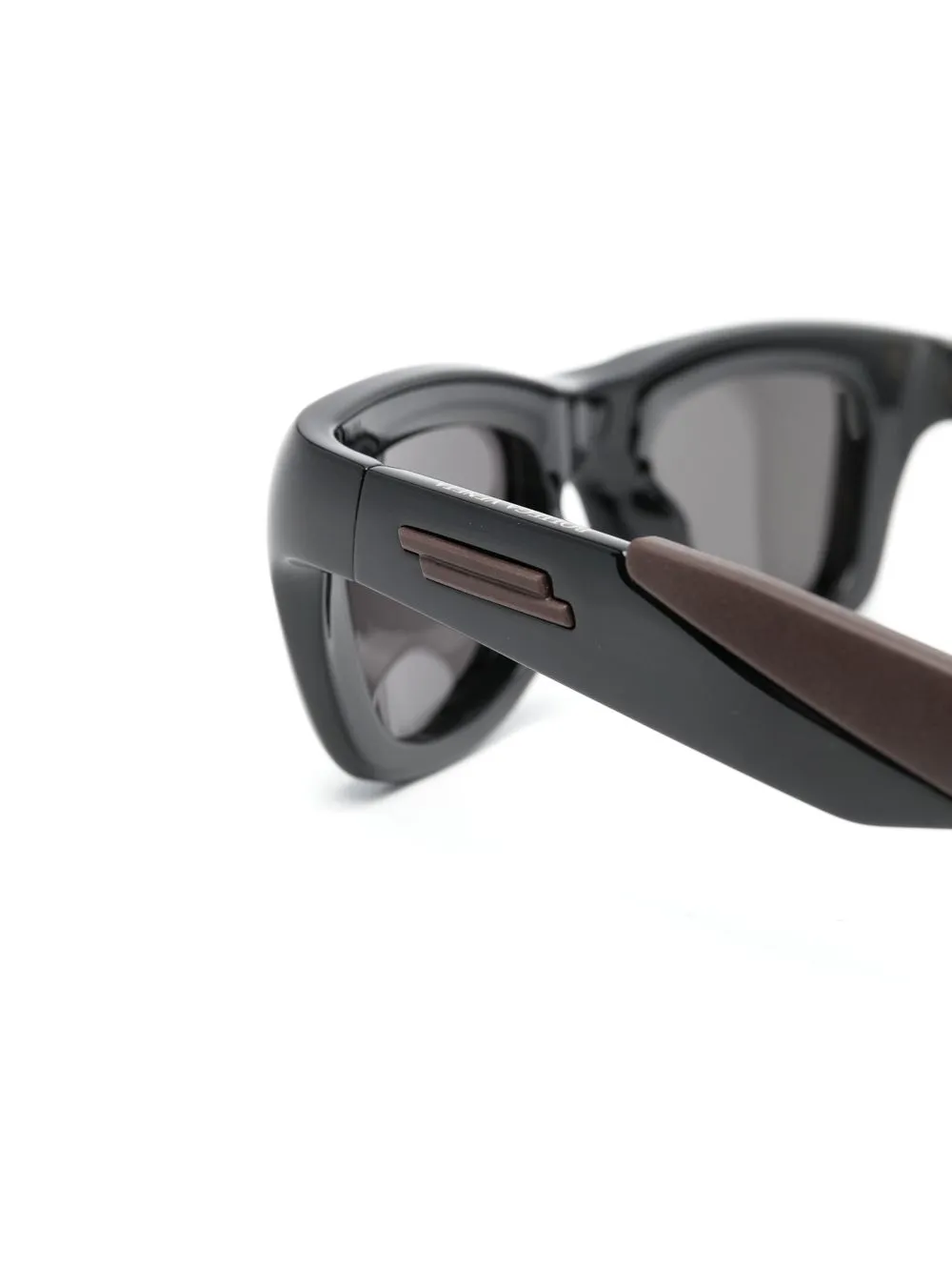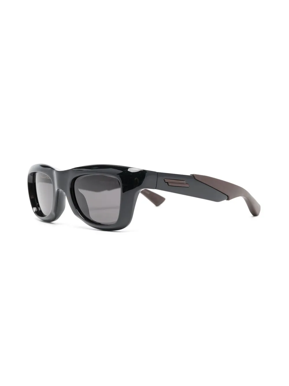 Negro carbón, marrón chocolate, acetato, diseño de dos tonos, montura rectangular, lentes de color gris, logo estampado en la patilla, patillas rectas y puntas curvadas. Estas gafas vienen con un estuche de protección..