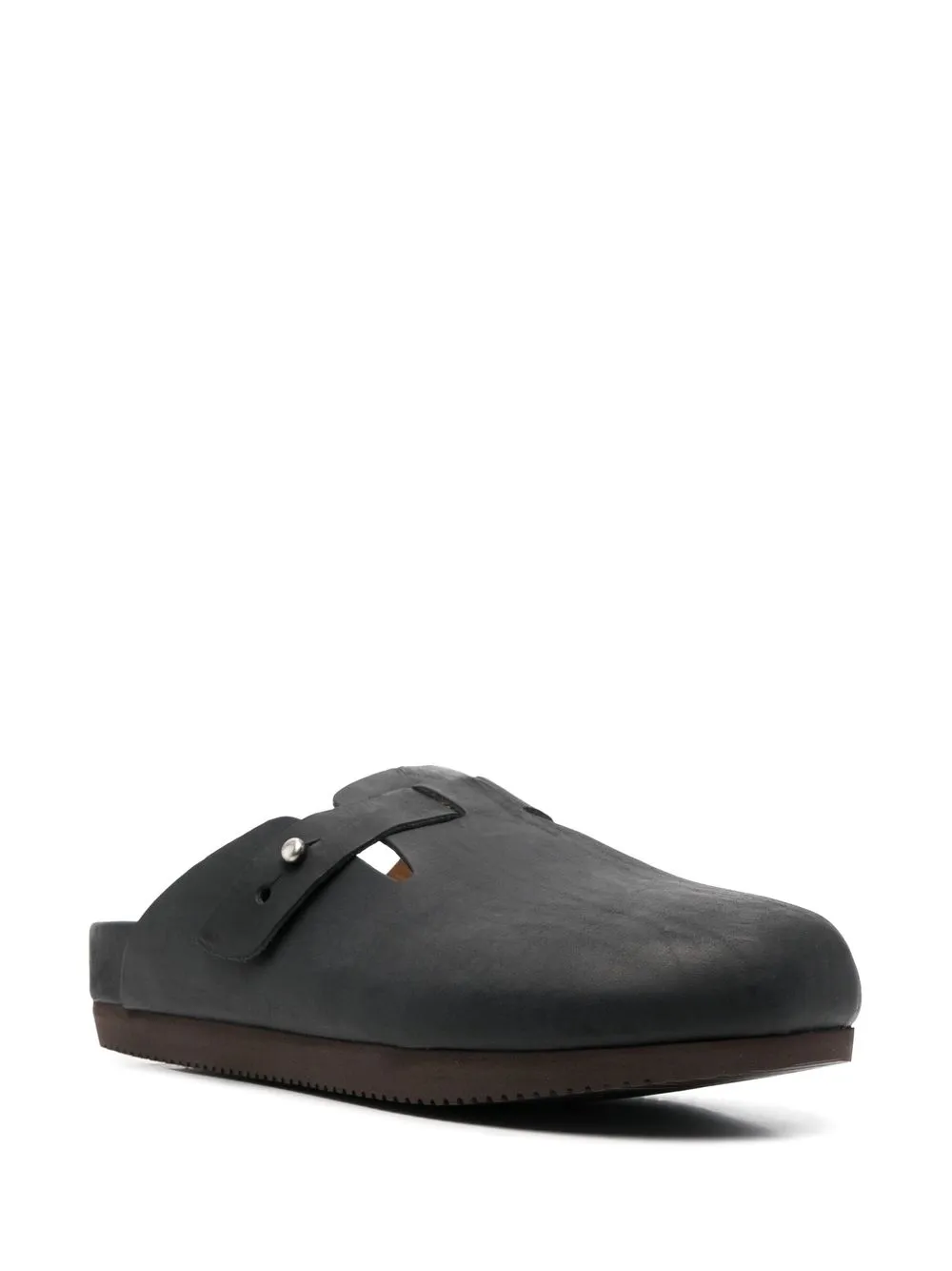 Negro carbón, cuero, puntera redonda, cierre con hebilla, estilo slip-on
