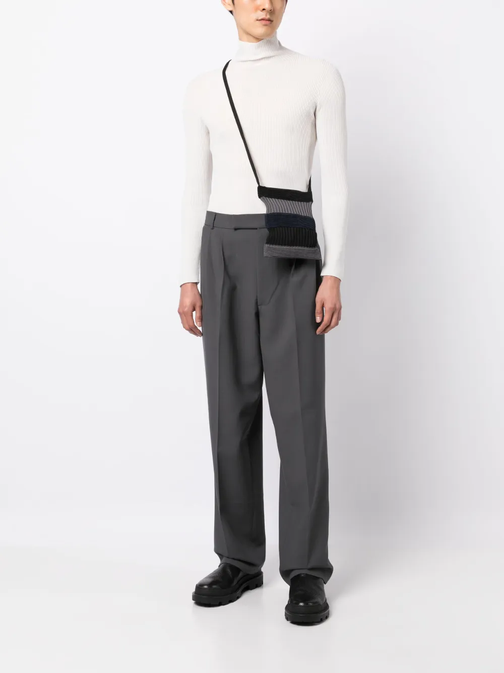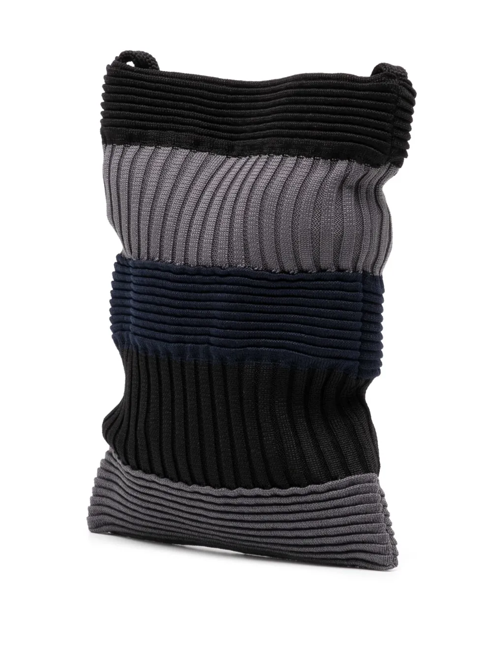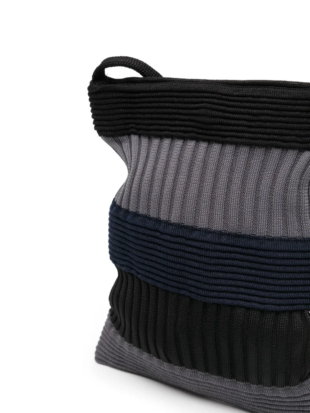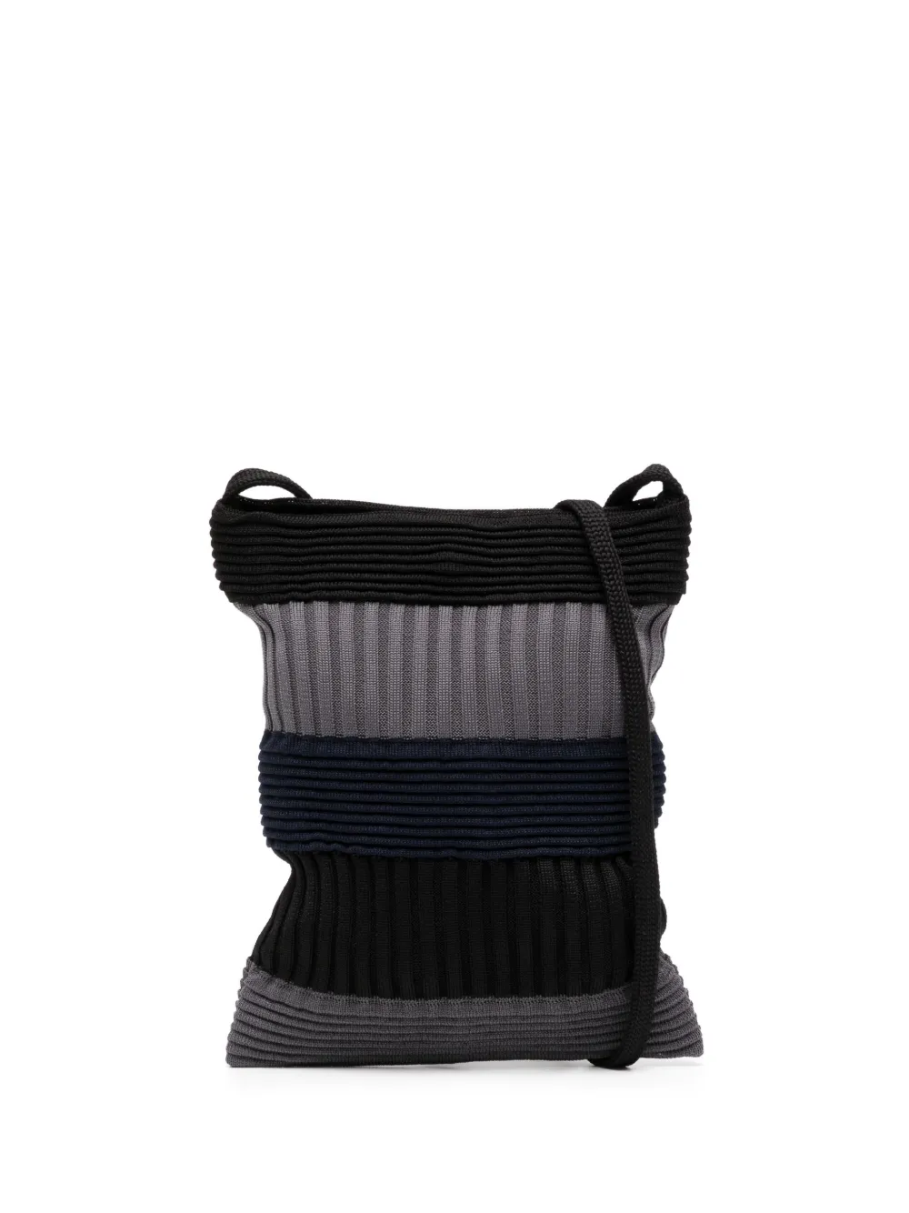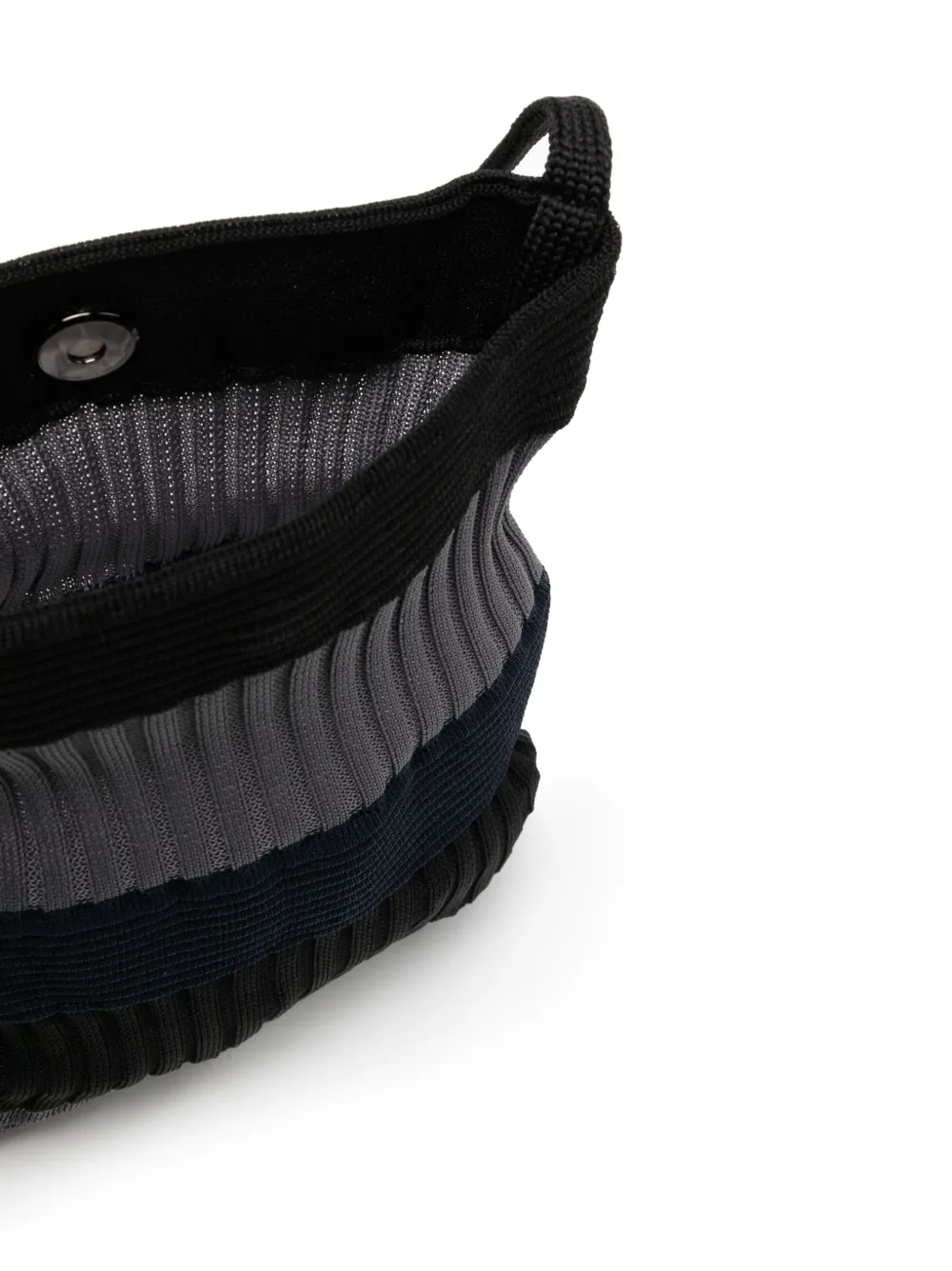 Negro y gris, azul marino, poliéster reciclado, punto de canalé, diseño colour block, cierre magnético, correa de hombro ajustable y compartimento principal. Este artículo está elaborado con al menos un 50 % de materiales reciclados o suprarreciclados. Para limpiar las prendas elaboradas con materiales sintéticos reciclados, recomendamos el uso de una bolsa de lavado de microfibra para asegurar que no se liberen microplásticos que puedan contaminar el agua durante el proceso..