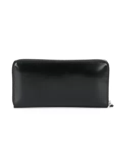 Detalle en relieve, cierre con cremallera en el tope, compartimento principal y acabado en tono dorado. Material: cuero.