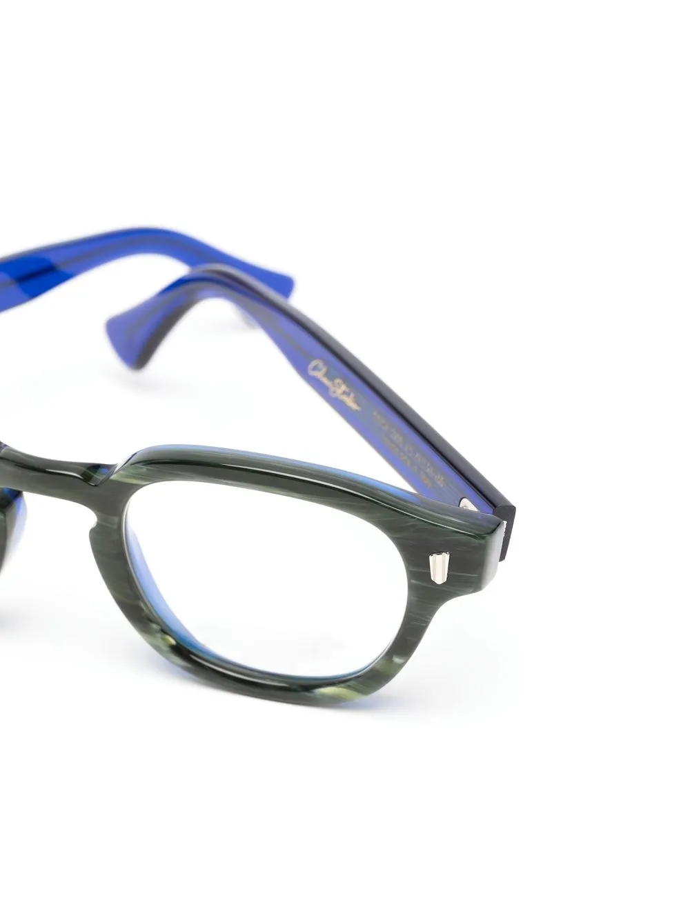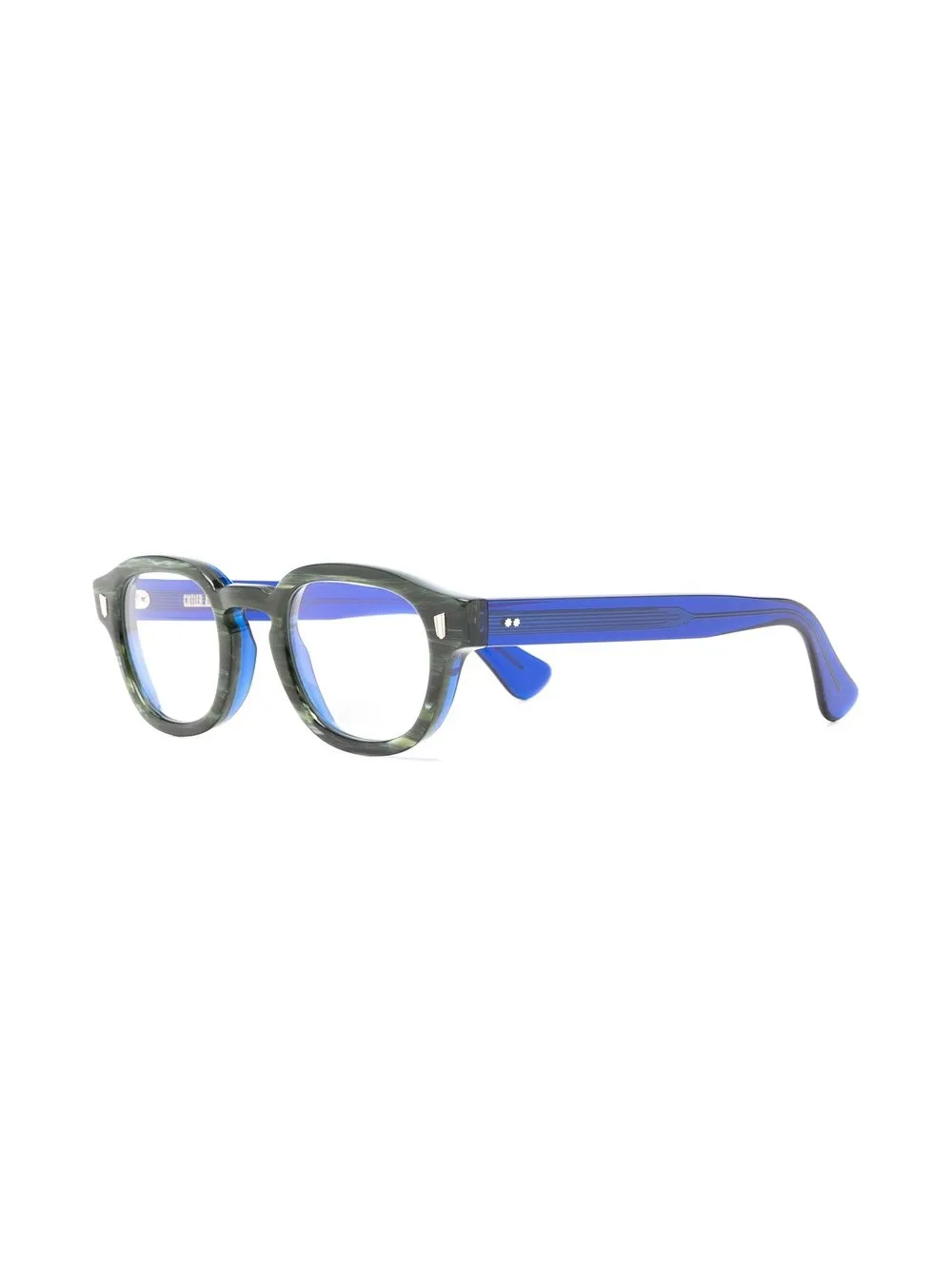 Negro, azul, acetato, montura redonda, diseño de dos tonos y acabado en tono plateado.