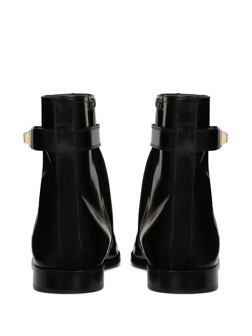 Cierre con hebilla con logo, cierre lateral con cremallera, diseño por el tobillo, puntera redonda, suela plana y plantilla con logo.