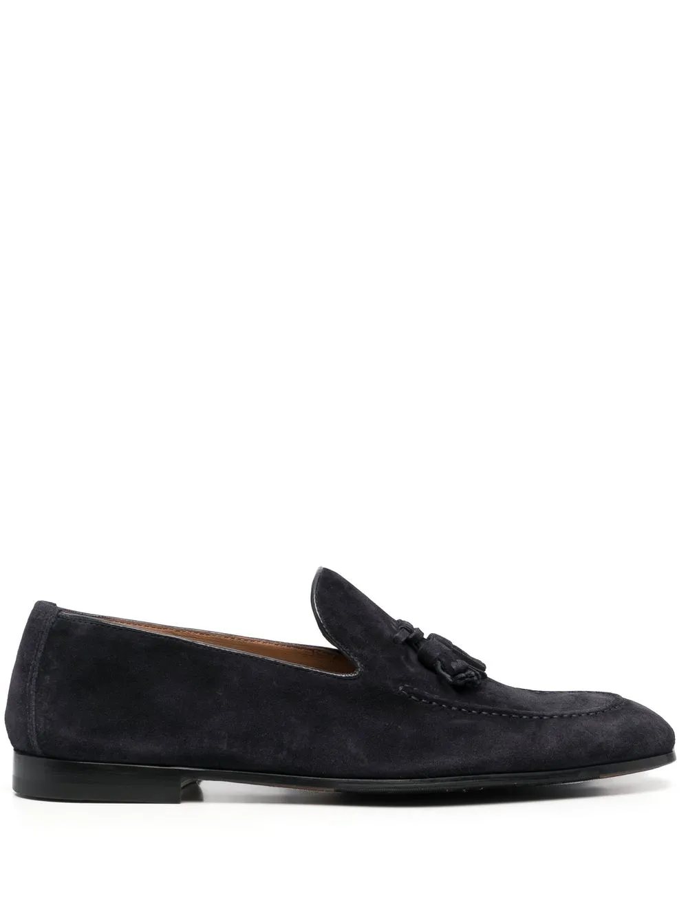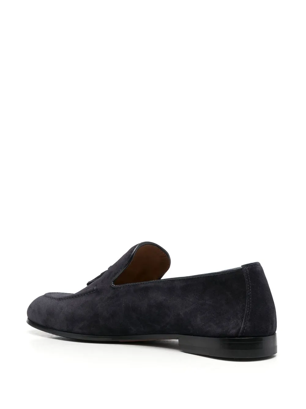 Azul medianoche, piel de becerro, detalle de borla, puntera de almendra, estilo slip-on