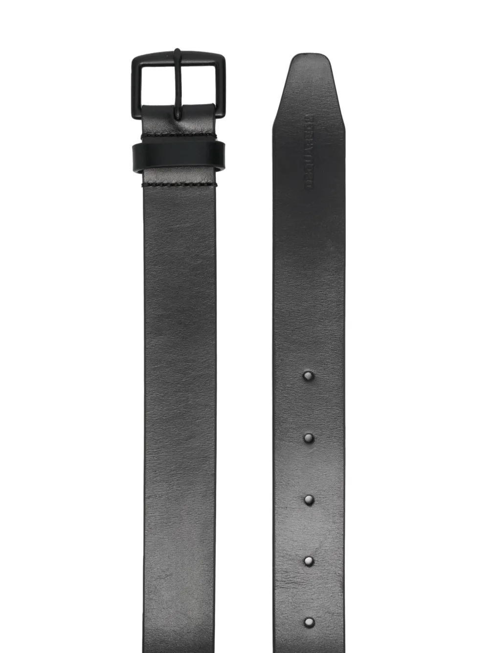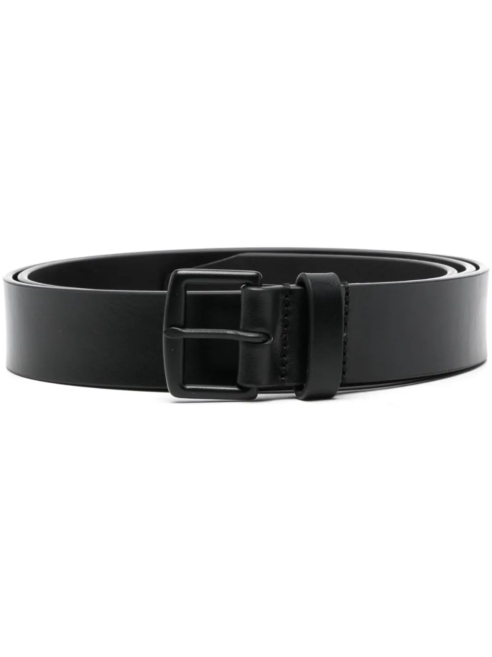 Negro, piel de becerro, logo grabado en la parte delantera, cierre con hebilla y diseño ajustable.