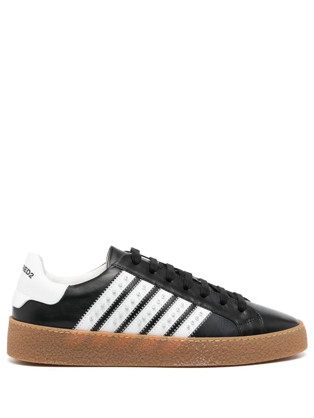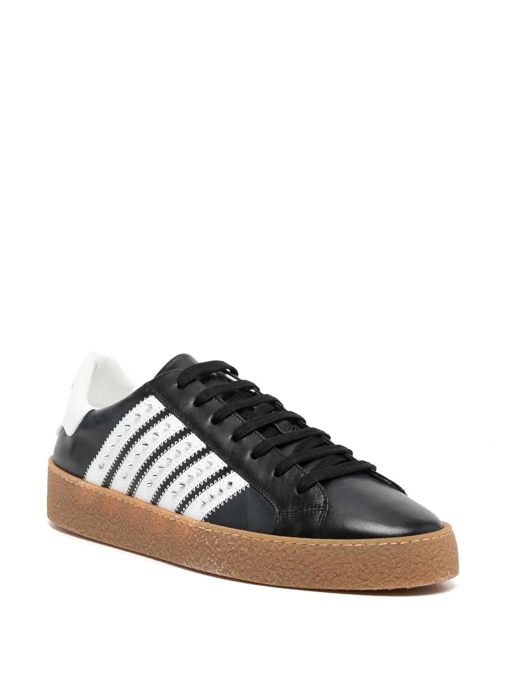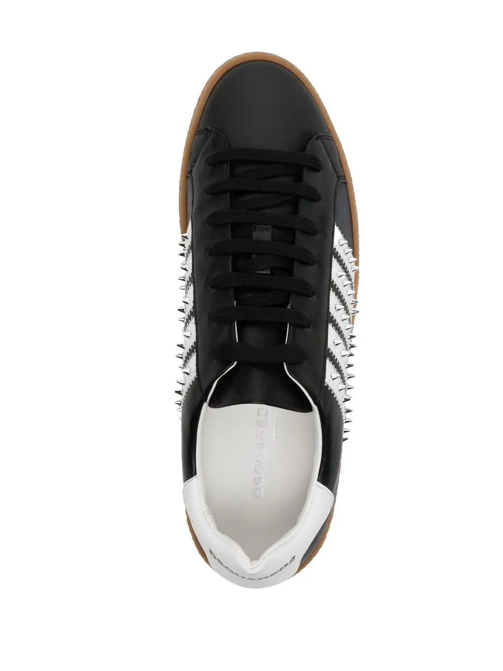 Zapatillas New Runner en cuero de color negro de DSQUARED2 con puntera redonda, cierre con cordones en la parte delantera, detalle de apliques en tono plateado y logo en el contrafuerte.
