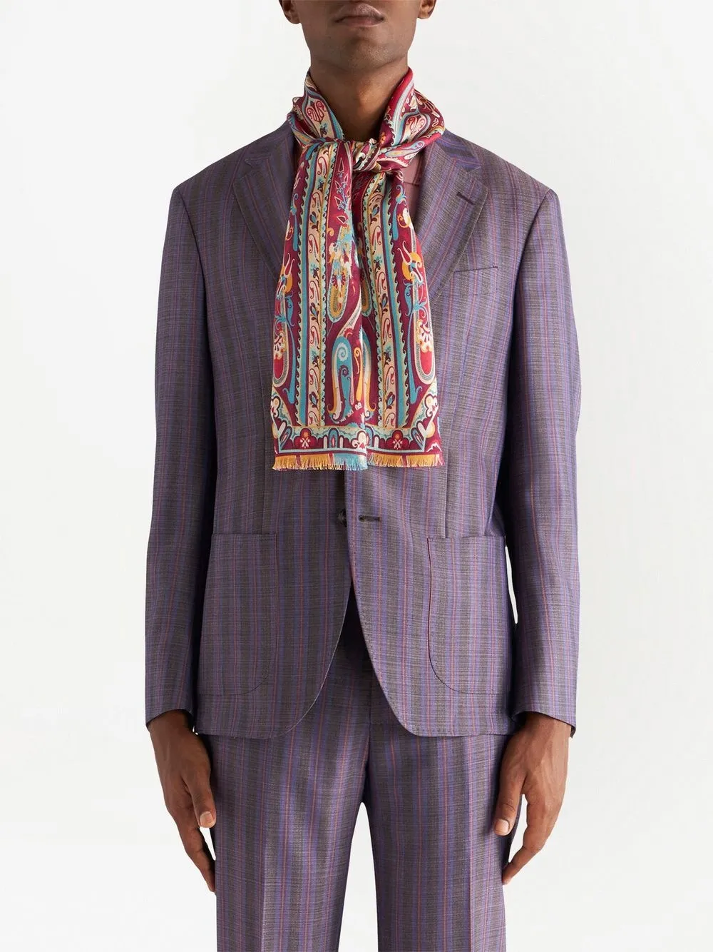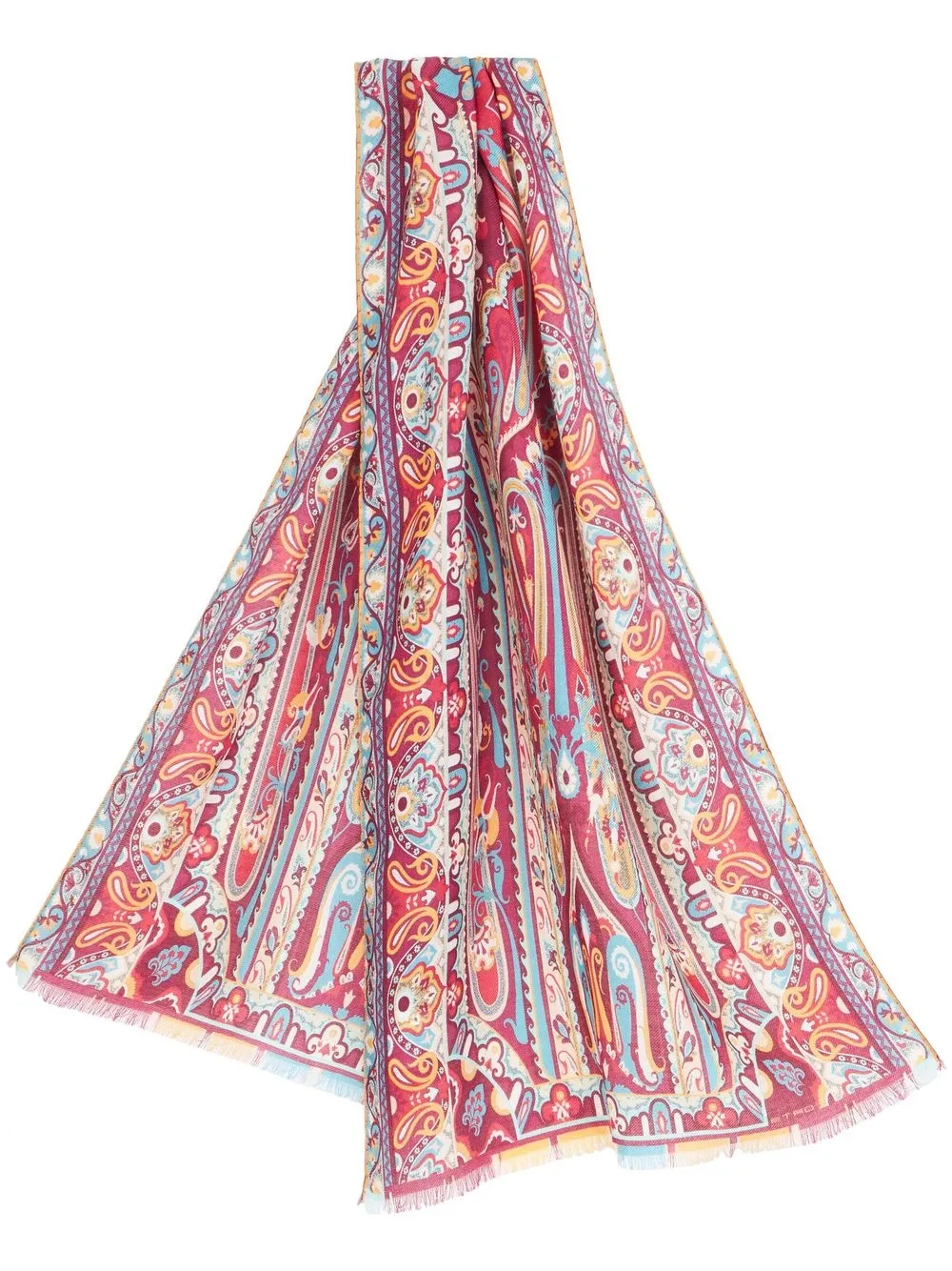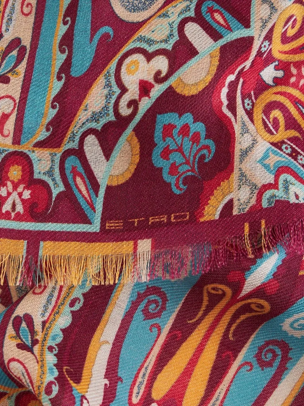 Estampado de cachemira, borde con logo estampado y detalle deshilachado.