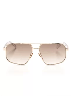 Dorado, acetato, montura oversize, lentes degradadas, almohadillas para la nariz, logo estampado en la patilla, patillas rectas y puntas curvadas. Estas gafas vienen con un estuche de protección..