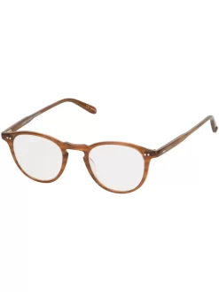 Gafas «Hampton» marrones de Garrett Leight con motivo de imitación de carey, monturas redondas, puente redondeado, puntos metálicos en las esquinas superiores, patillas delgadas con detalles de puntos metálicos y adaptadas a cualquier prescripción. El puente mide 21cm. Este artículo viene con un estuche protector. Unisex.