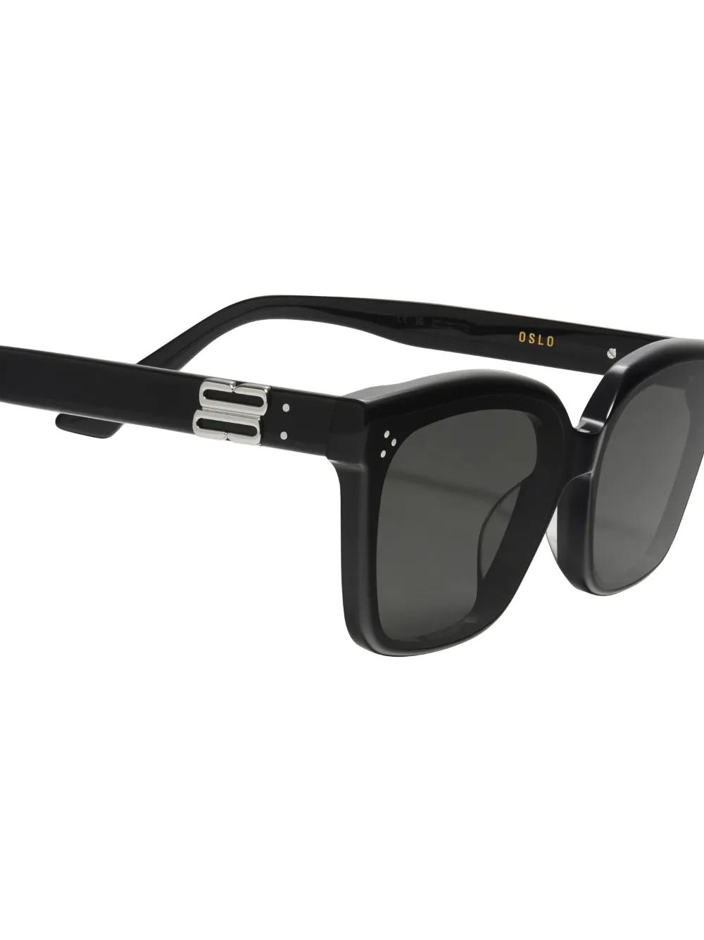 Negro, acetato, lentes de color, montura cuadrada, logo en la patilla, patillas rectas y puntas curvadas. Estas gafas vienen con un estuche de protección..