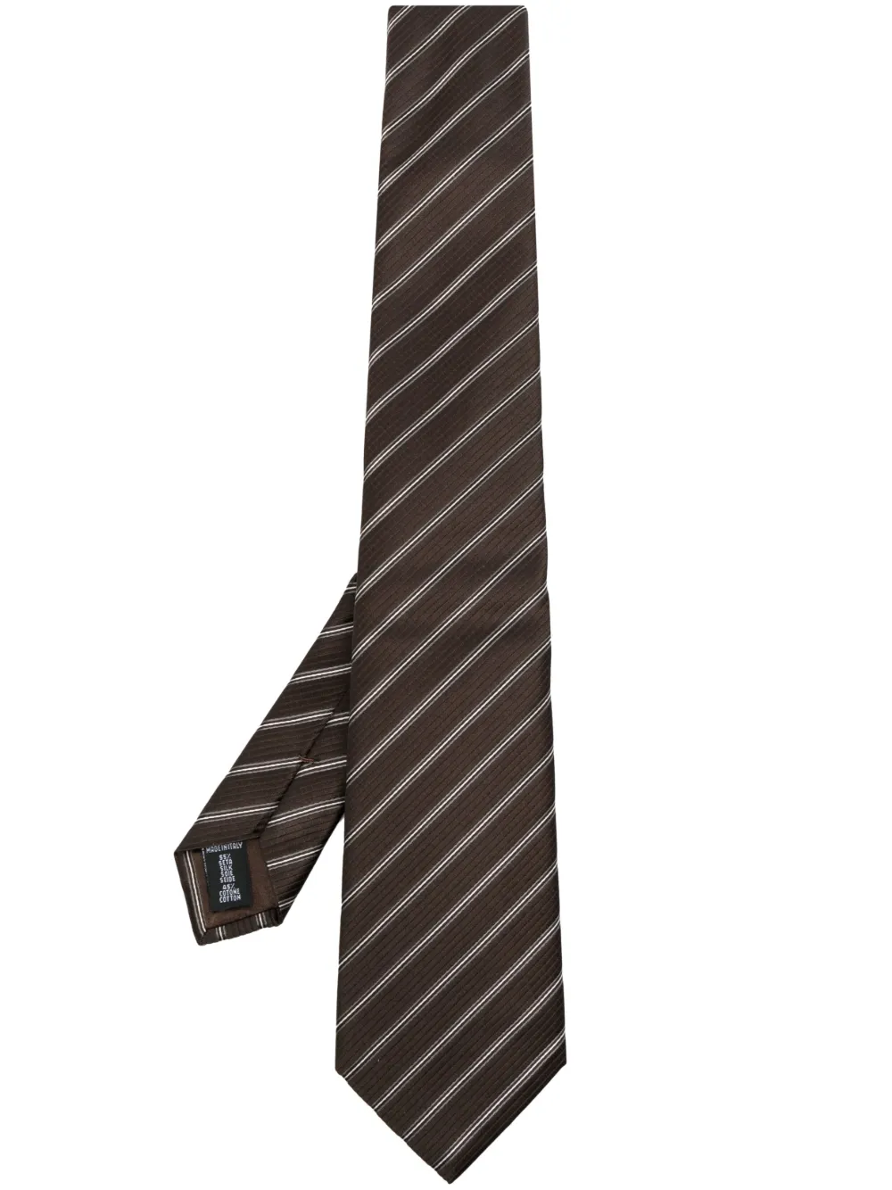 Marrón, mezcla de seda y algodón, motivo de rayas diagonales, punta puntiaguda, autocierre y diseño ajustable.