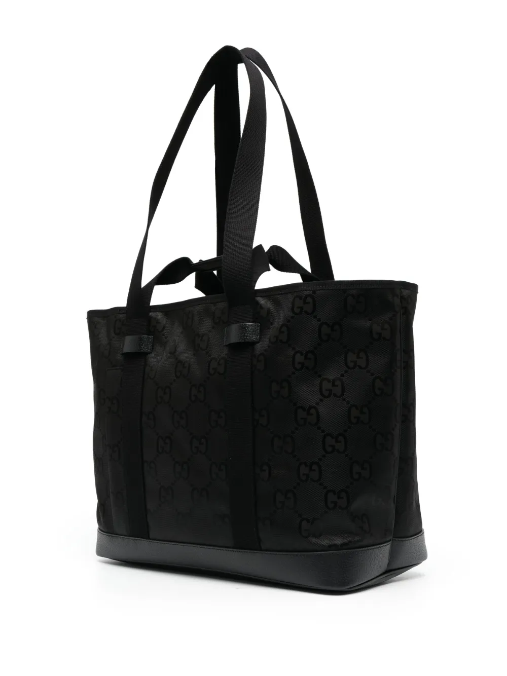 Negro, estampado GG Supreme, parche del logo en la parte delantera, abierto en el tope, asas circulares en la parte superior, dos correas ajustables para los hombros, bolsillo interno con cremallera y forro completo.