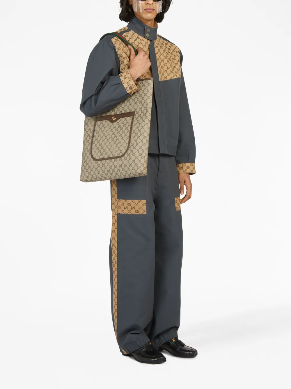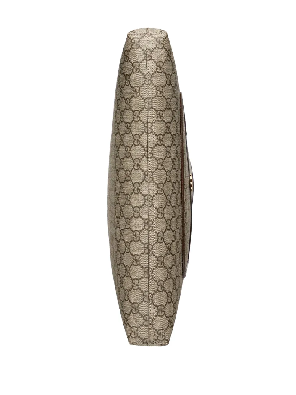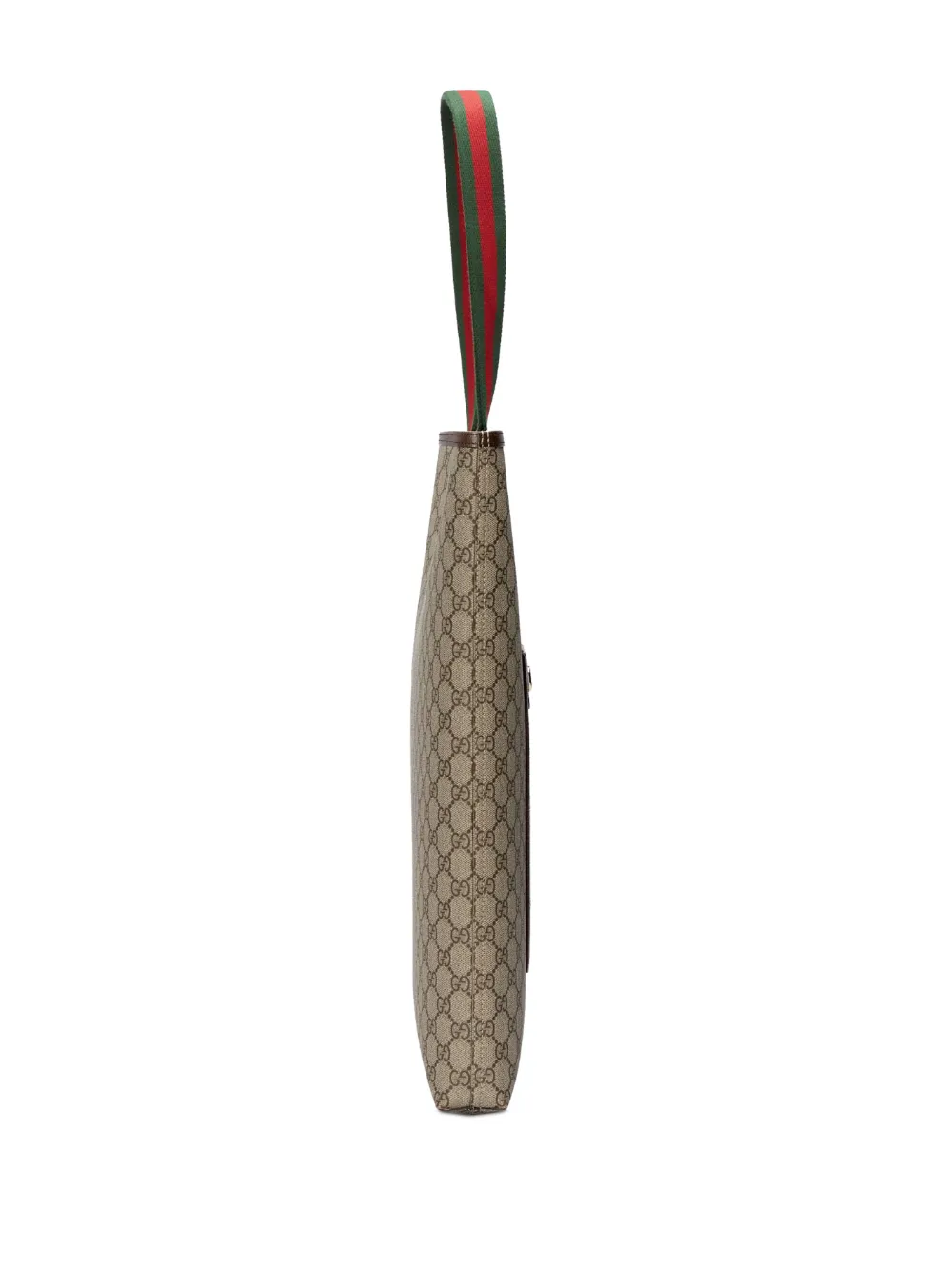 Marrón, estampado clásico GG, ribete de cuero, logo GG entrelazado característico, bolsillo de parche en la parte delantera, ribete con tribanda Web, asas planas en la parte superior y compartimento principal.