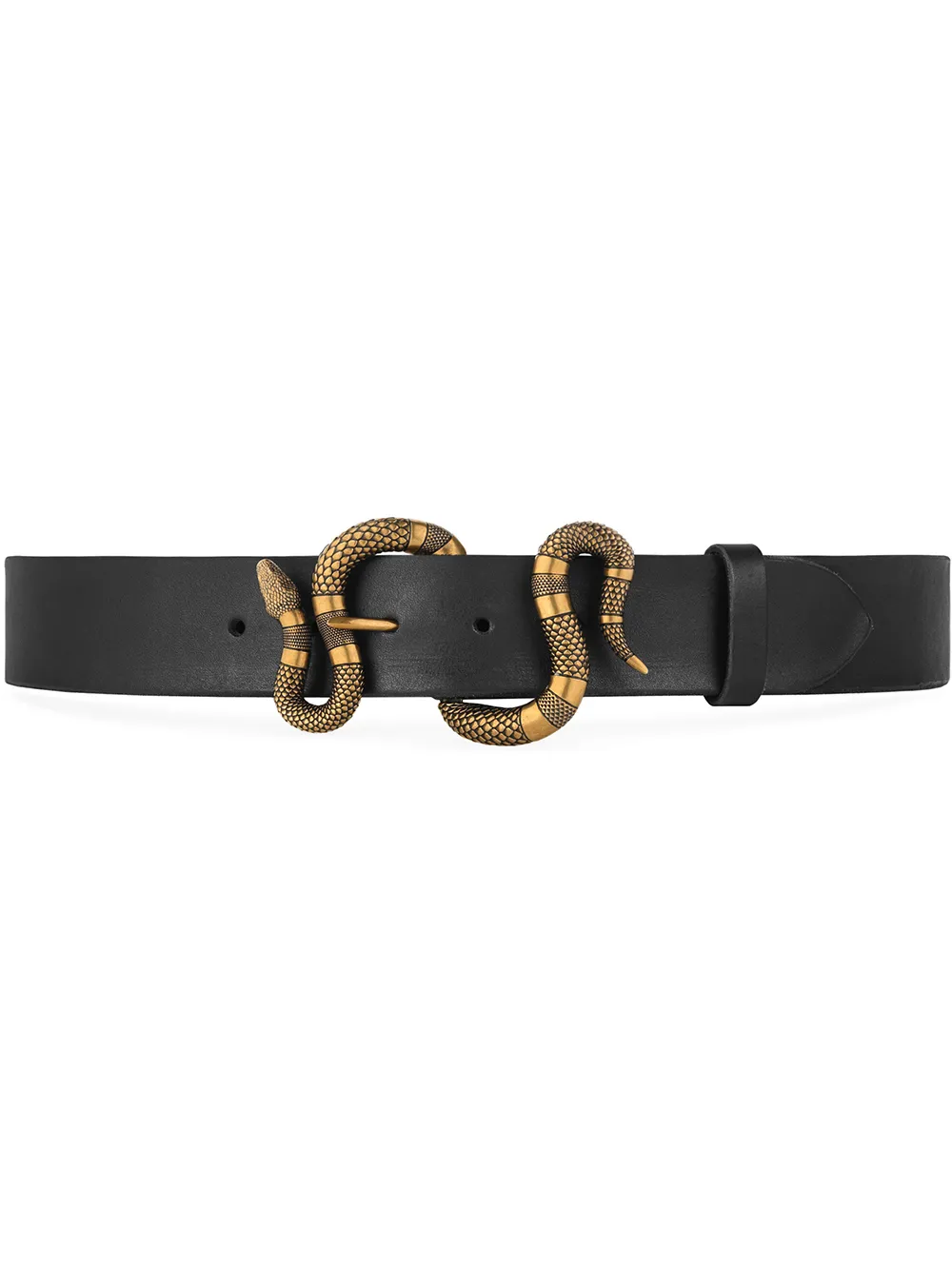 Cinturón de piel con hebilla de serpiente de color negro de Gucci con piel negra con bordes brutos, piezas metálicas de latón, hebilla de serpiente, 4 cm de anchura y made in Italy. Las tallas de los cinturones Gucci son italianas; consulte la guía de tallas antes de efectuar un pedido.