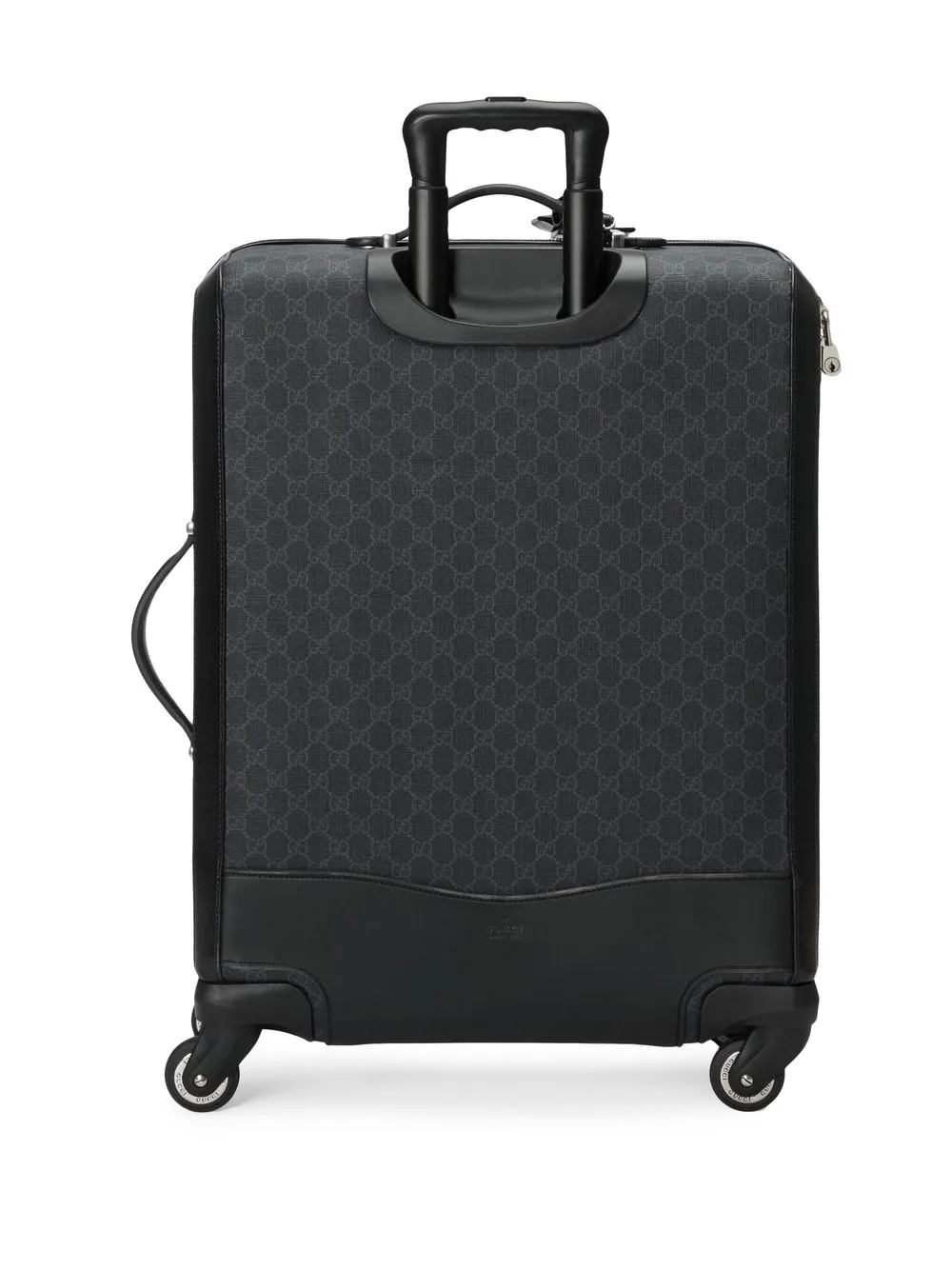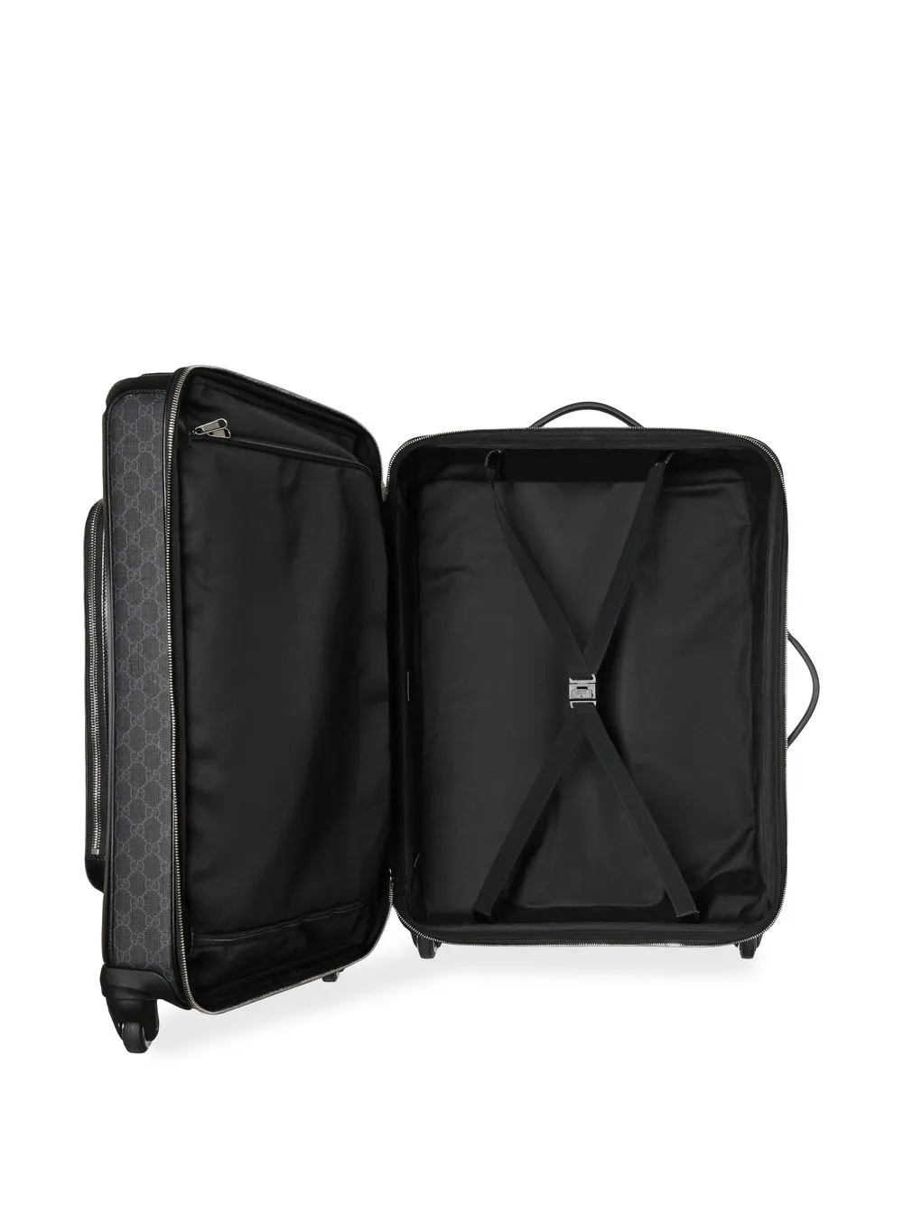 Negro, algodón, cuero, acabado en tono paladio, estampado GG Supreme, ribete de cuero, cierre con cremallera en el tope, asa telescópica, asa plana en la parte superior, compartimento principal, tiras elásticas y bolsillo con cremallera en la parte delantera.
