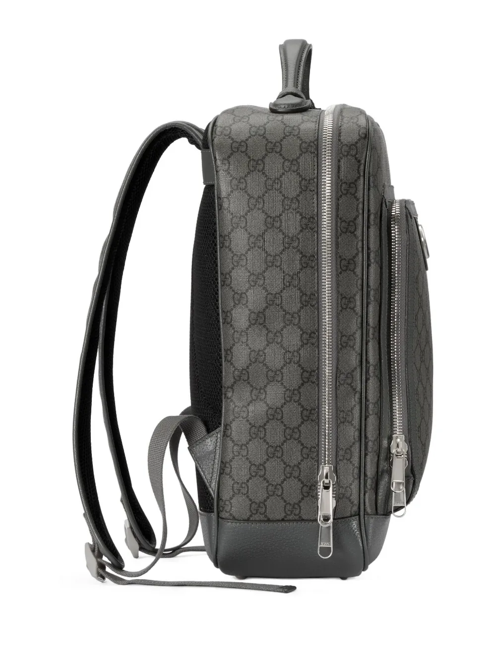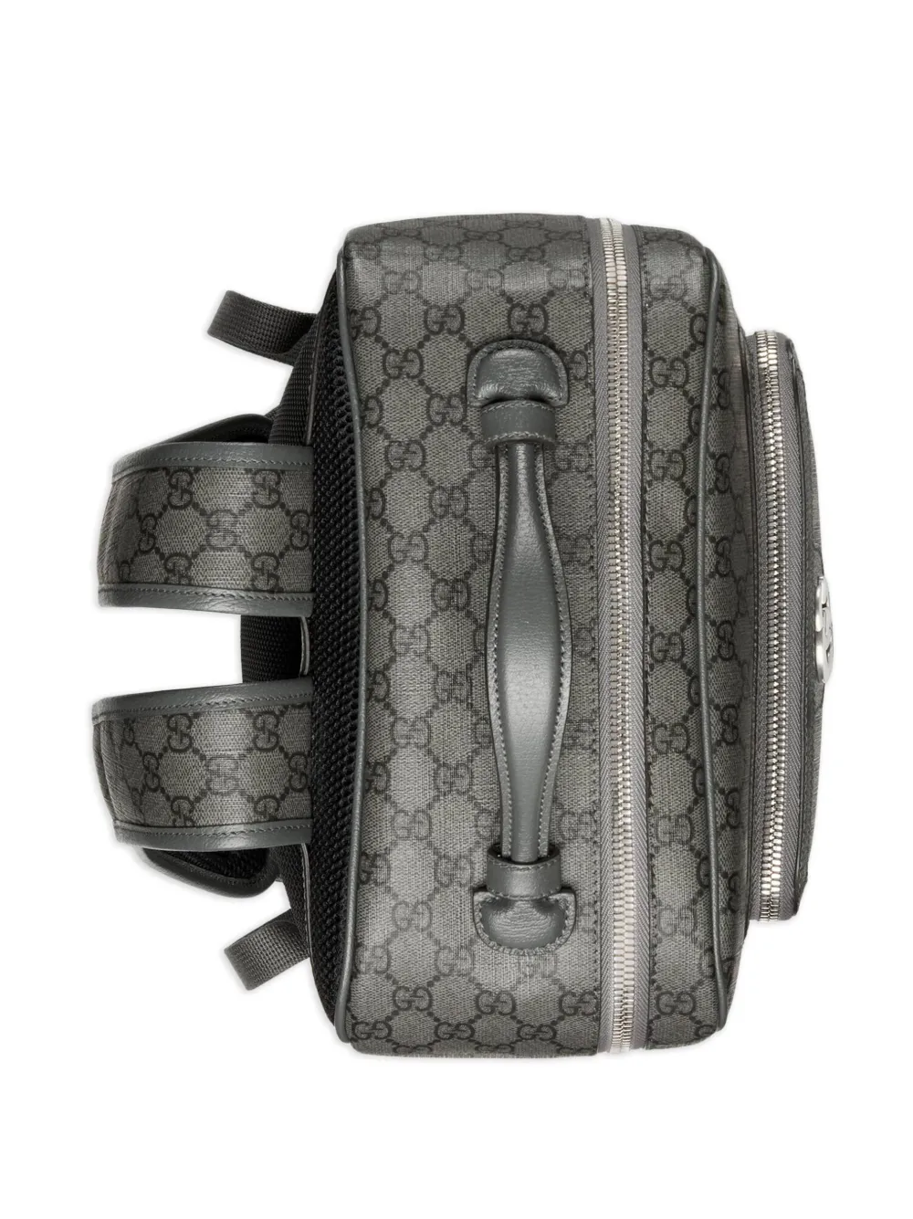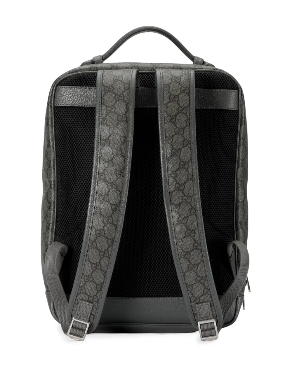Gris ceniza, cuero, estampado clásico GG, logo Double G característico, asa en la parte superior, dos correas ajustables para los hombros, cierre con cremallera en el contorno, compartimento principal, bolsillo interno, bolsillo interno con cremallera y bolsillo con cremallera en la parte delantera.