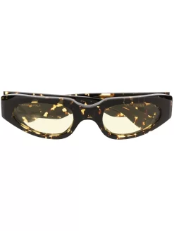 Amarillo, negro, efecto de carey, montura rectangular, lentes de color amarillo, logo en la patilla, acabado en tono dorado, Protección UV, patillas rectas y puntas curvadas. Estas gafas vienen con un estuche de protección.. Por favor, ten en cuenta que las gafas que compras en FARFETCH no tienen graduación..