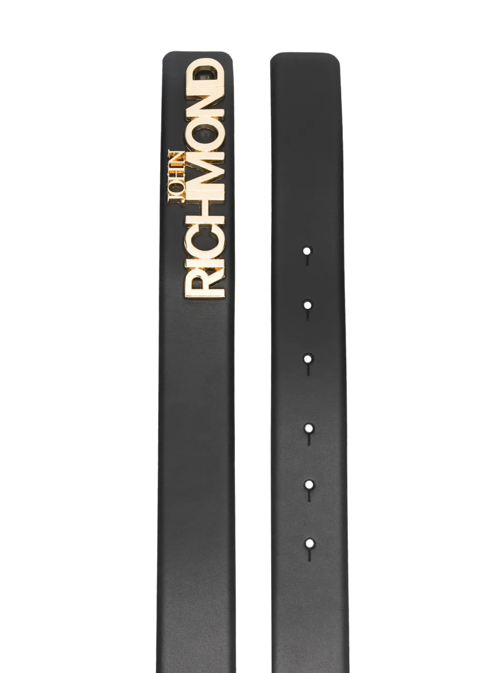 Negro, piel de becerro, placa del logo en tono dorado, cierre con hebilla del logo, agujeros perforados y diseño ajustable.
