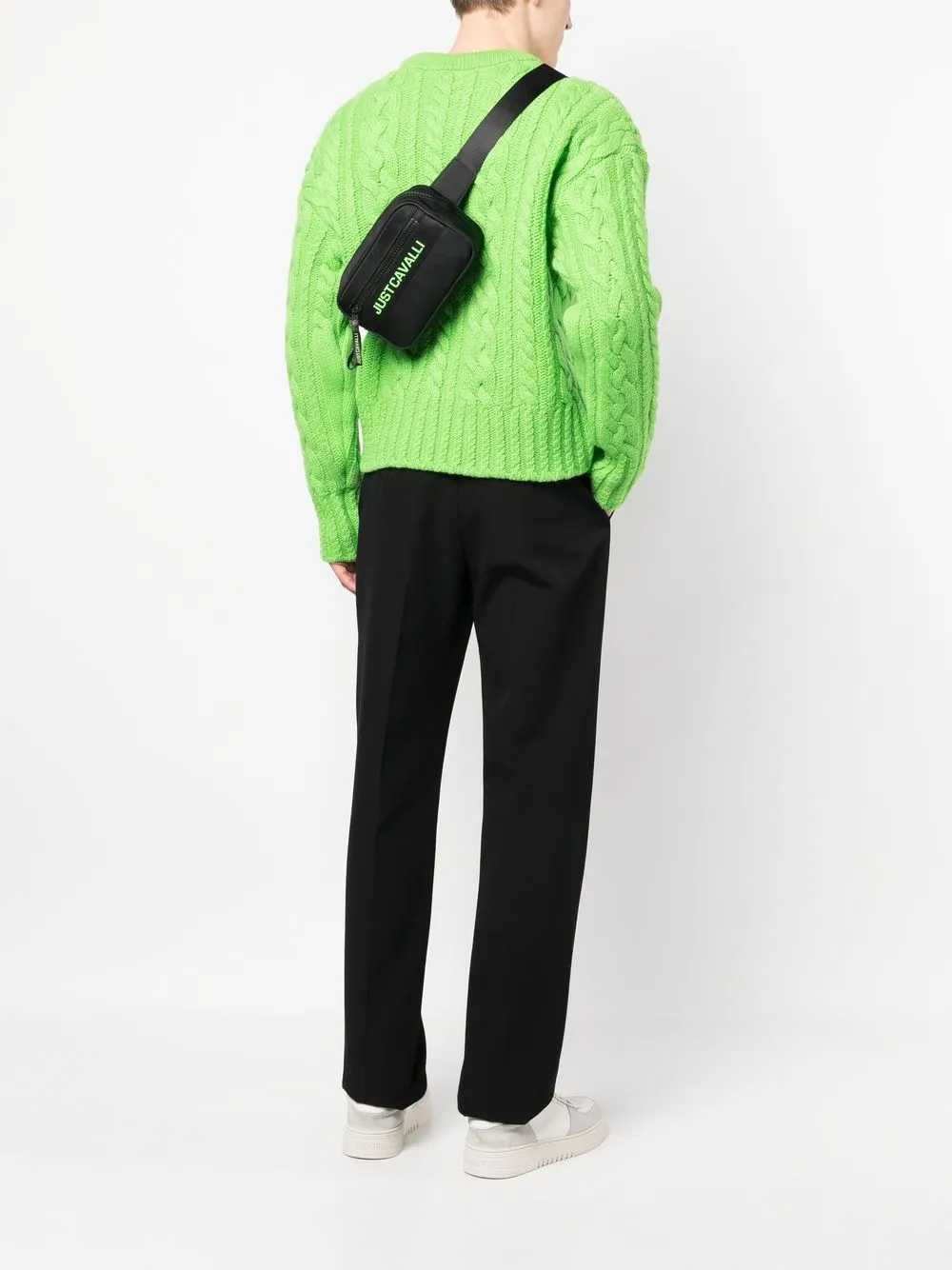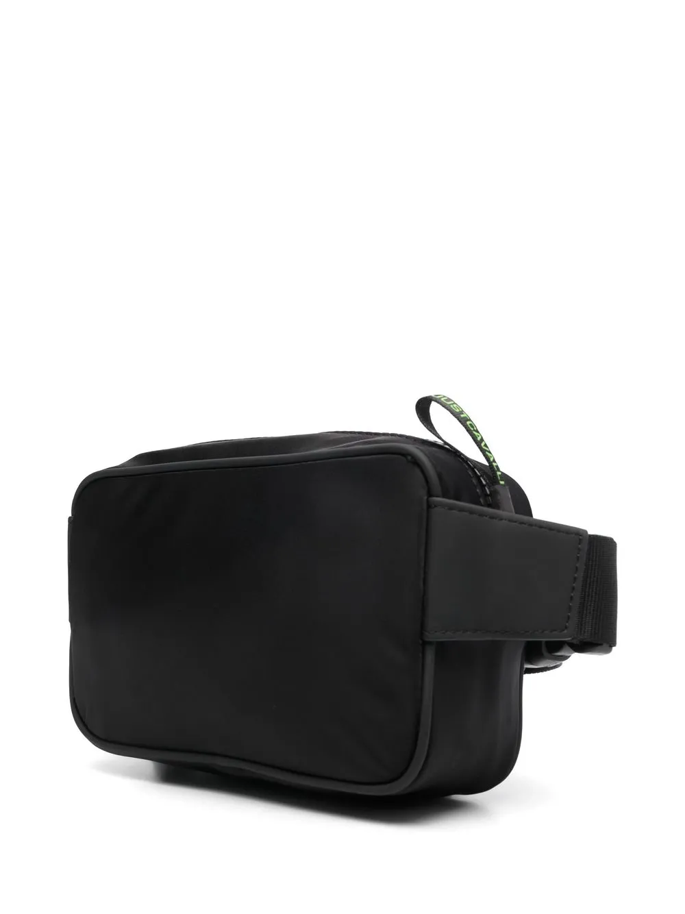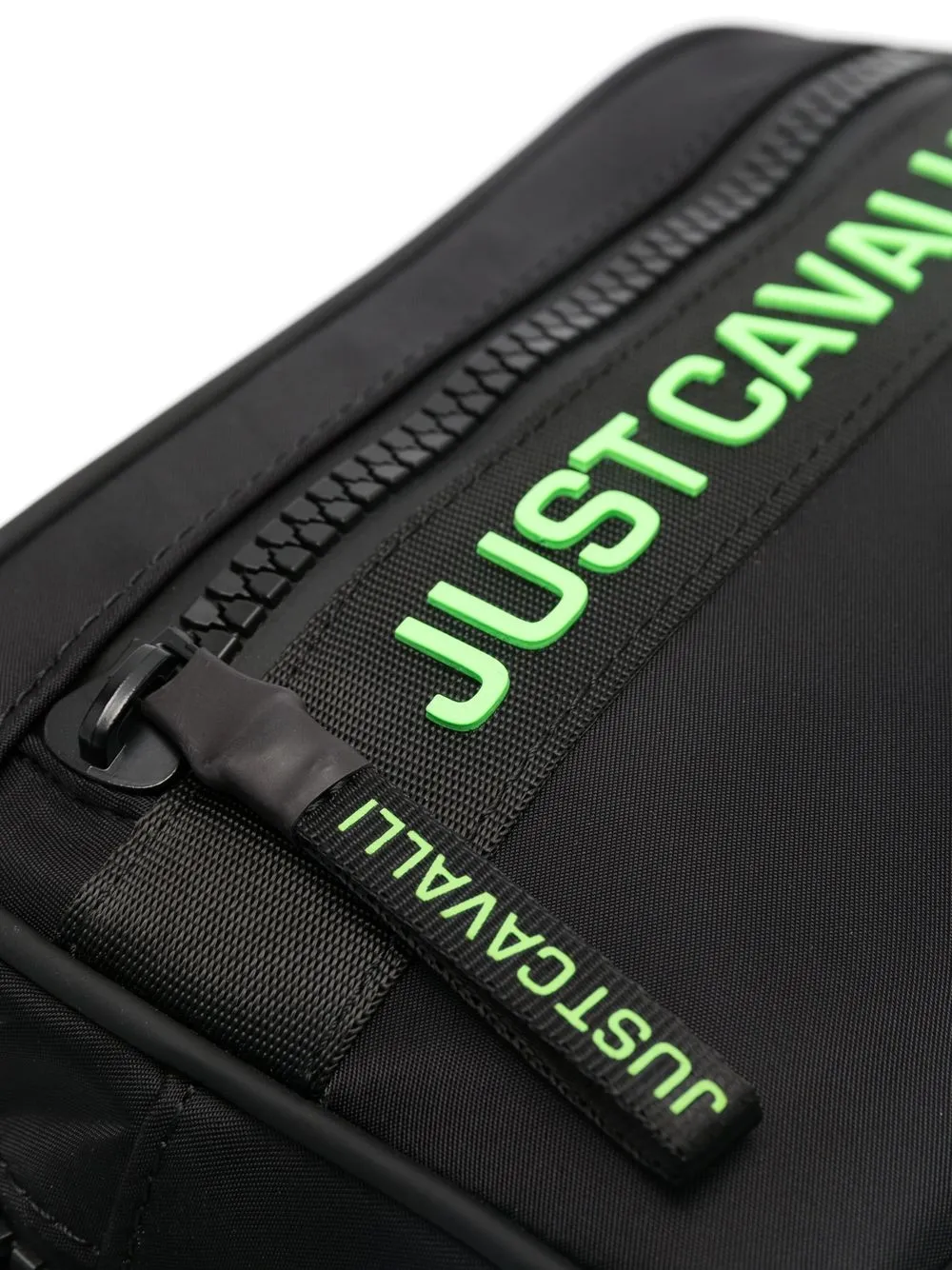 Negro, verde brillante, parche del logo en la parte posterior, cierre con cremallera en el tope, bolsillo con cremallera en la parte delantera, compartimento principal y correa de hombro ajustable.