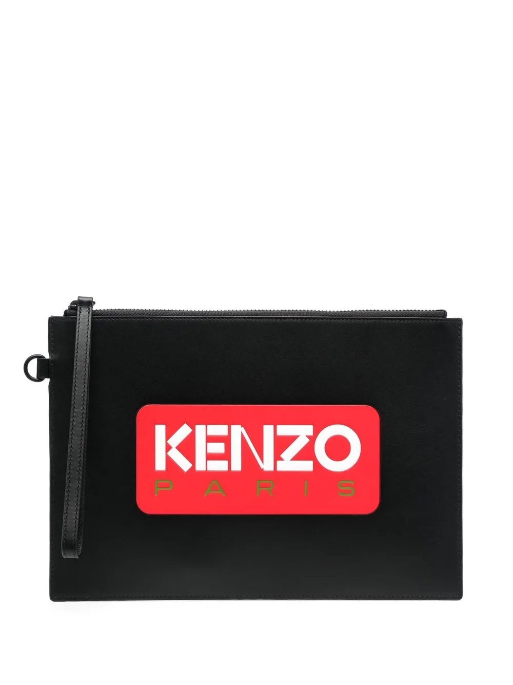 Negro carbón, piel de becerro, estampado del logo en la parte delantera, cierre con cremallera en el tope, compartimento principal y bolsillo interno.
