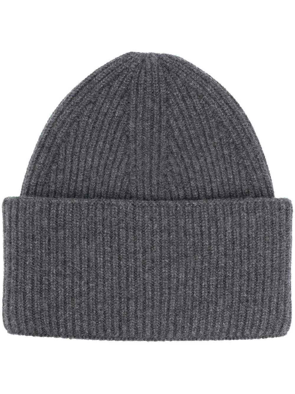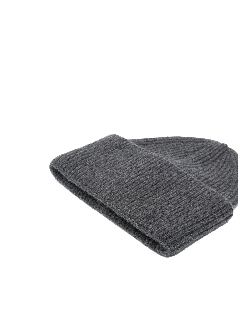 Gris oscuro, cachemira, punto de canalé y ala con vuelta.
