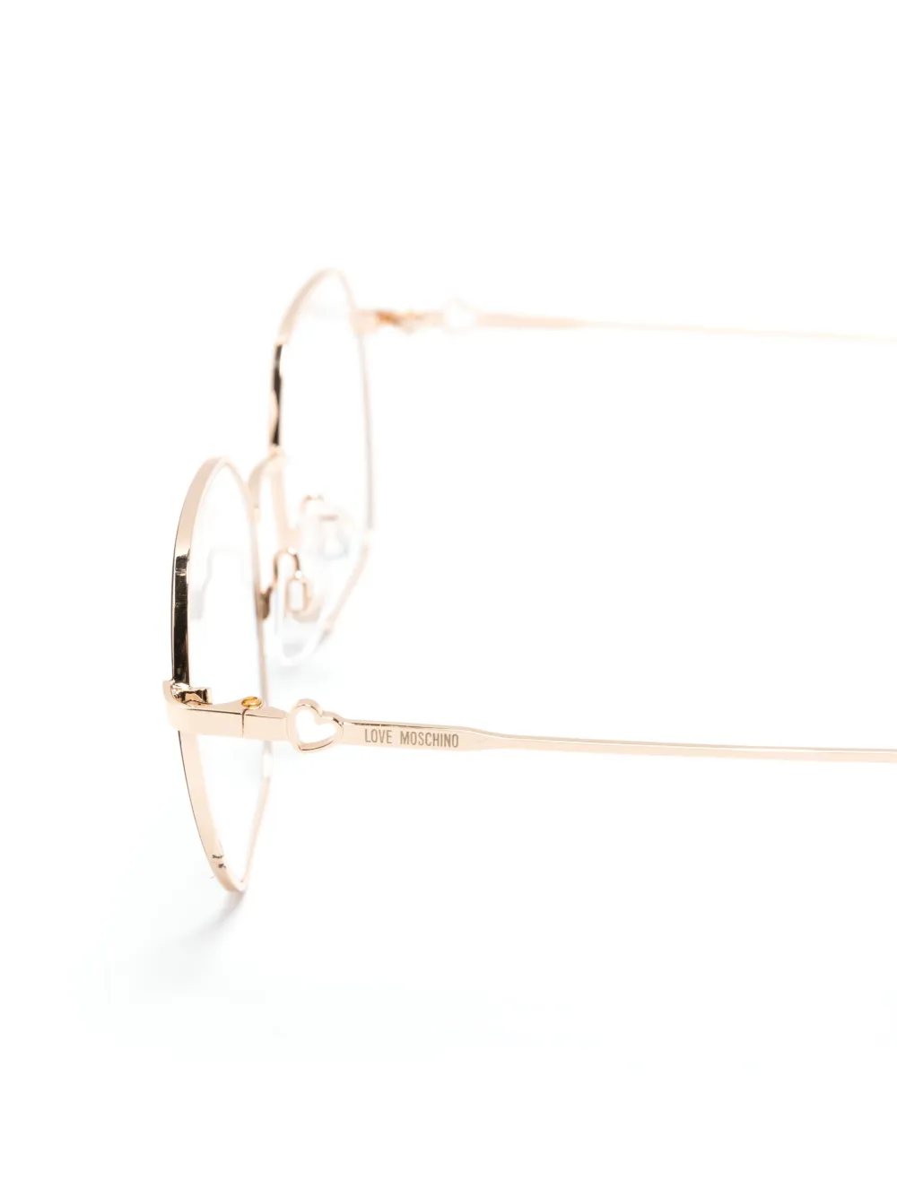 Dorado, negro, acero inoxidable, acetato, motivo de corazón, patilla con logo grabado, montura oversize, lentes transparentes, almohadillas para la nariz, patillas rectas y puntas curvadas. Por favor, ten en cuenta que las gafas que compras en FARFETCH no tienen graduación.. Estas gafas vienen con un estuche de protección..