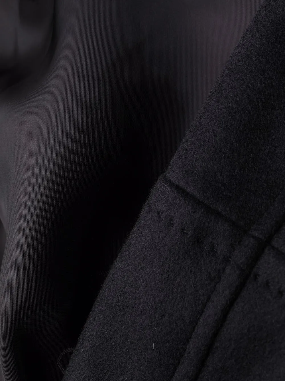 Diseño tonal, solapa de muesca, cierre con botones en la parte delantera, manga larga y dos bolsillos con solapa en la parte delantera.