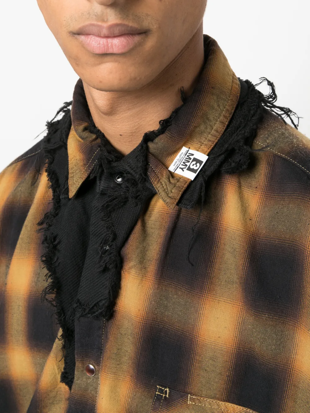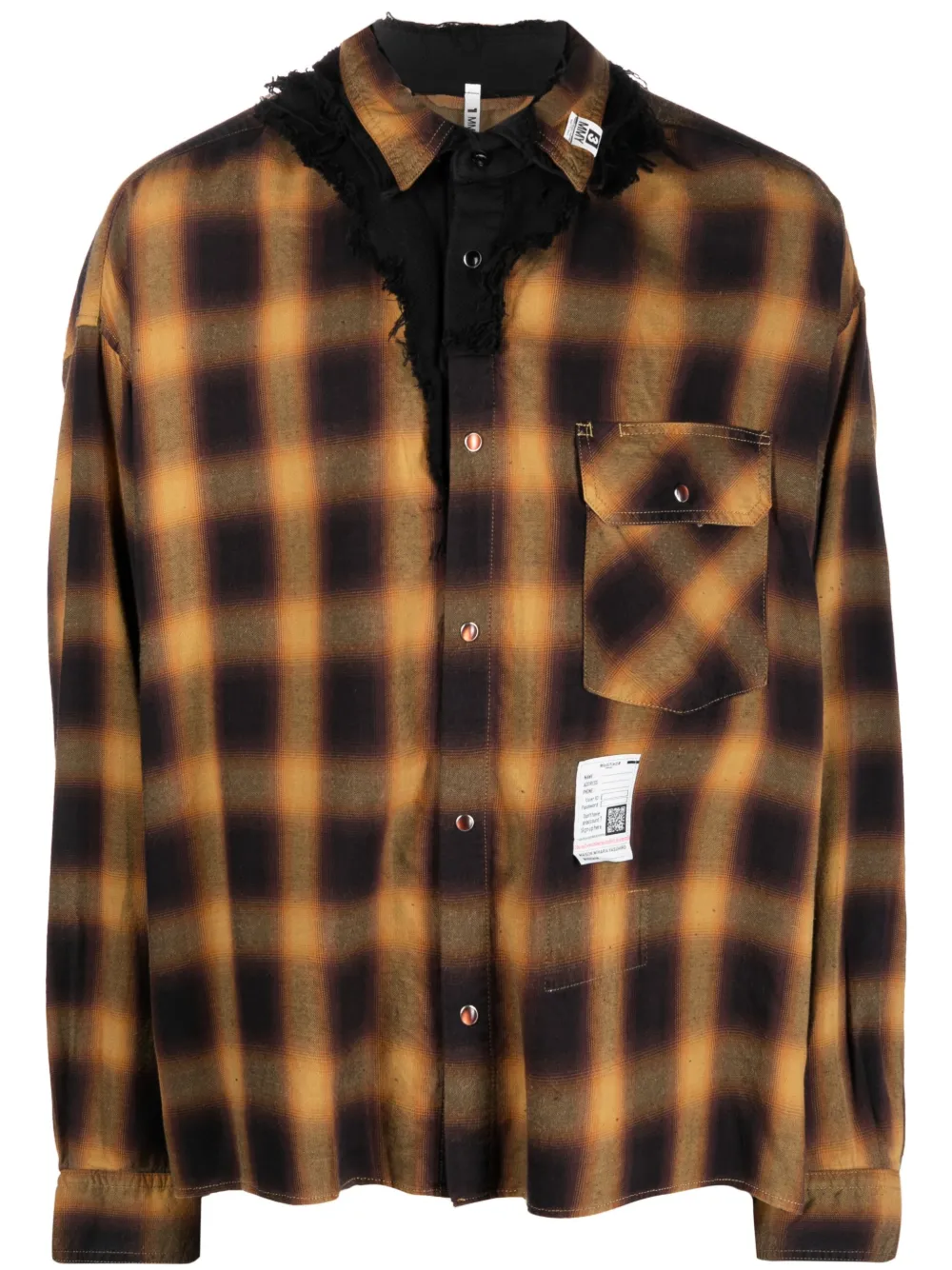 Caramelo claro, negro carbón, mezcla de algodón, acabado envejecido, parche del logo en la parte delantera, cuello clásico, cierre con botones en la parte delantera, manga larga, puños con botón, bolsillo con solapa en el pecho y dobladillo recto.