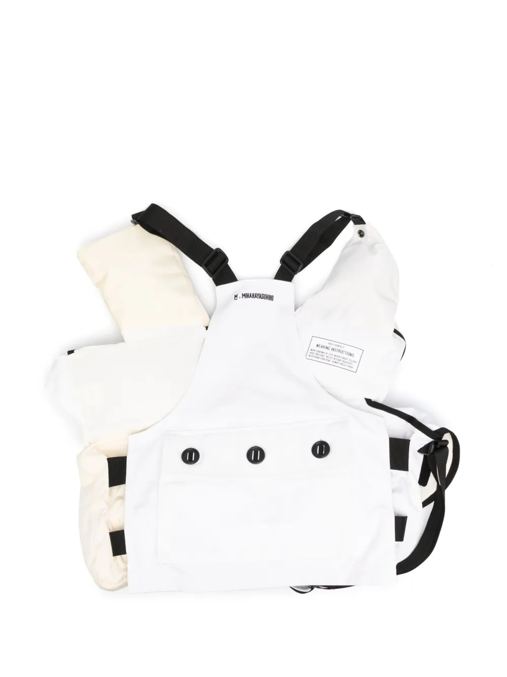 Algodón, logo bordado, parches del logo en la parte delantera, detalle de correa, diseño sin mangas, cierre con hebilla y múltiples bolsillos con cremallera.