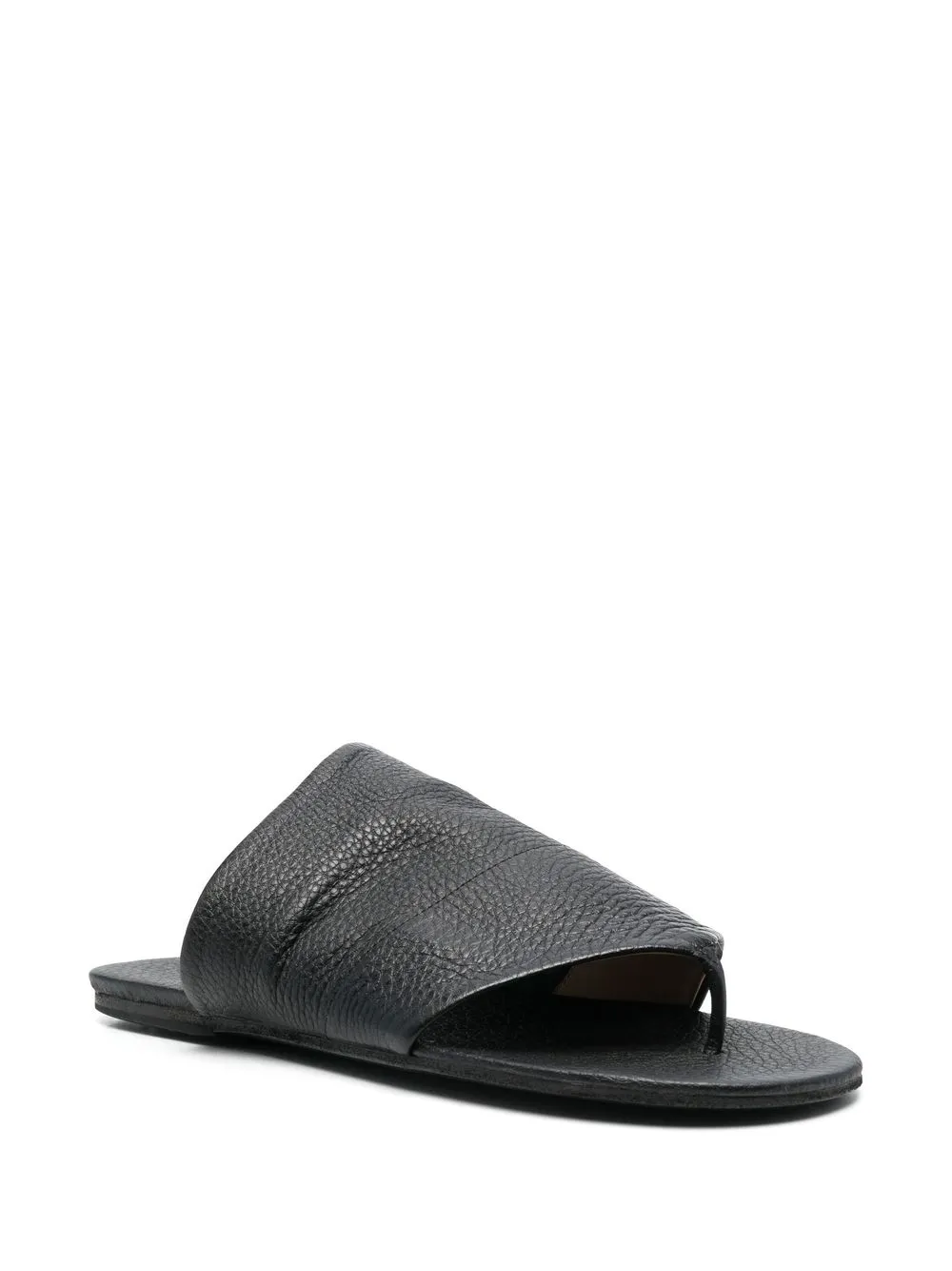 Negro, piel de becerro, tira para el dedo, puntera abierta y estilo slip-on