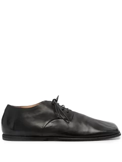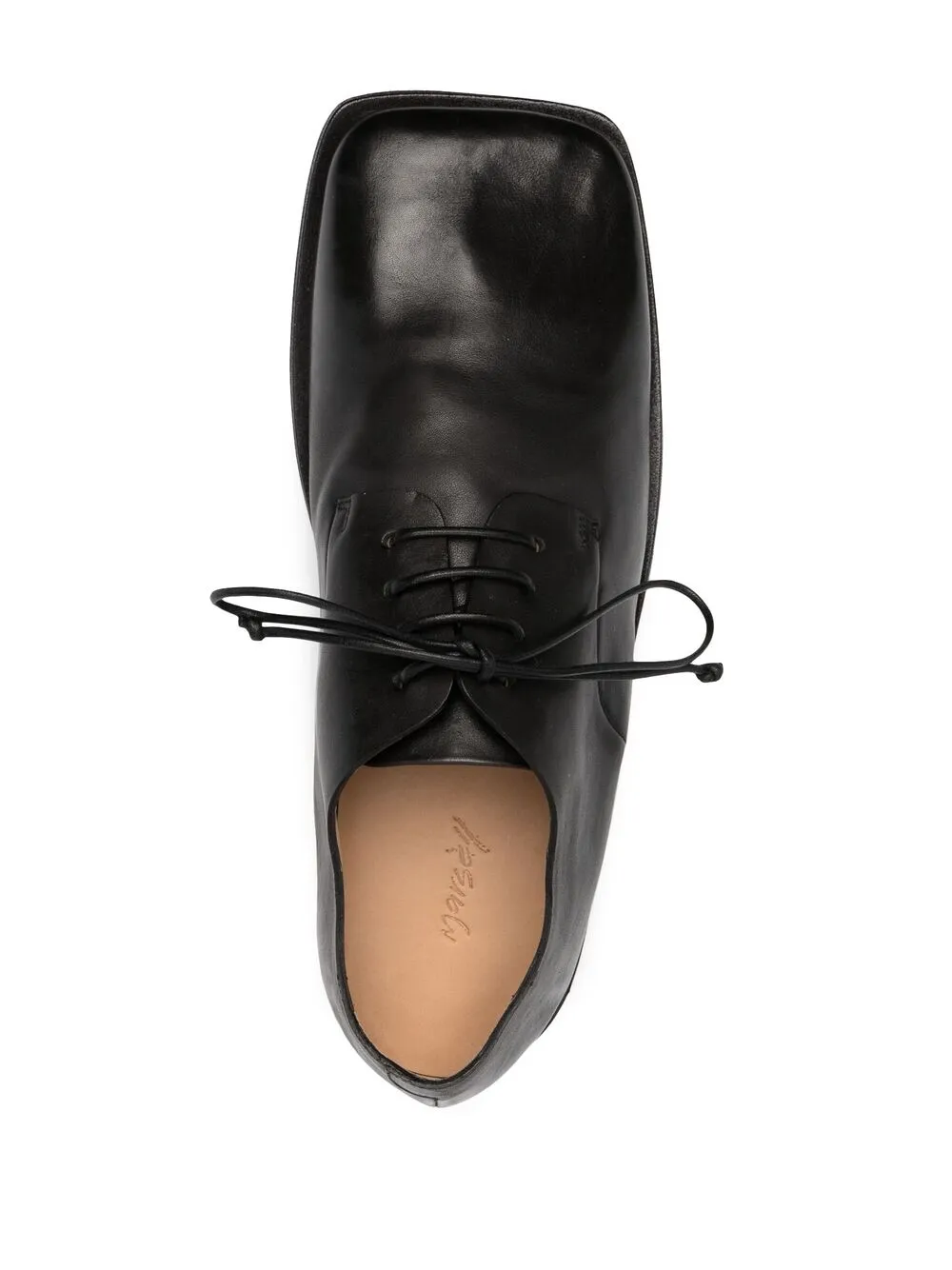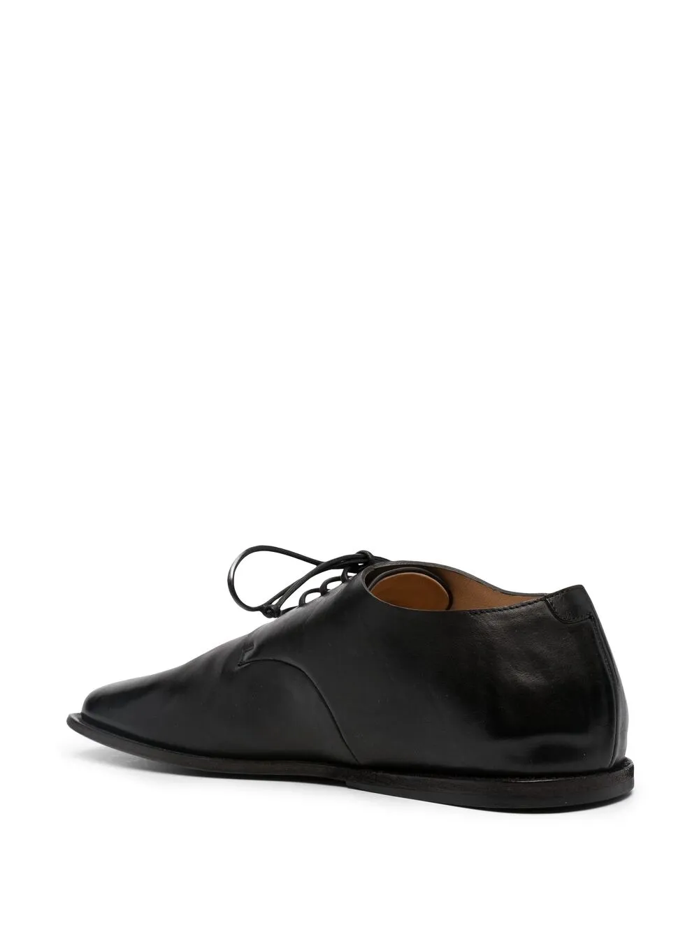 Puntera cuadrada, cierre con cordones en la parte delantera, suela plana de cuero y forro de cuero. Material: cuero.