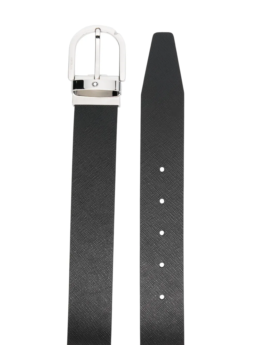 Negro, piel de becerro, acabado en tono plateado, cierre con hebilla, agujeros perforados y diseño ajustable.
