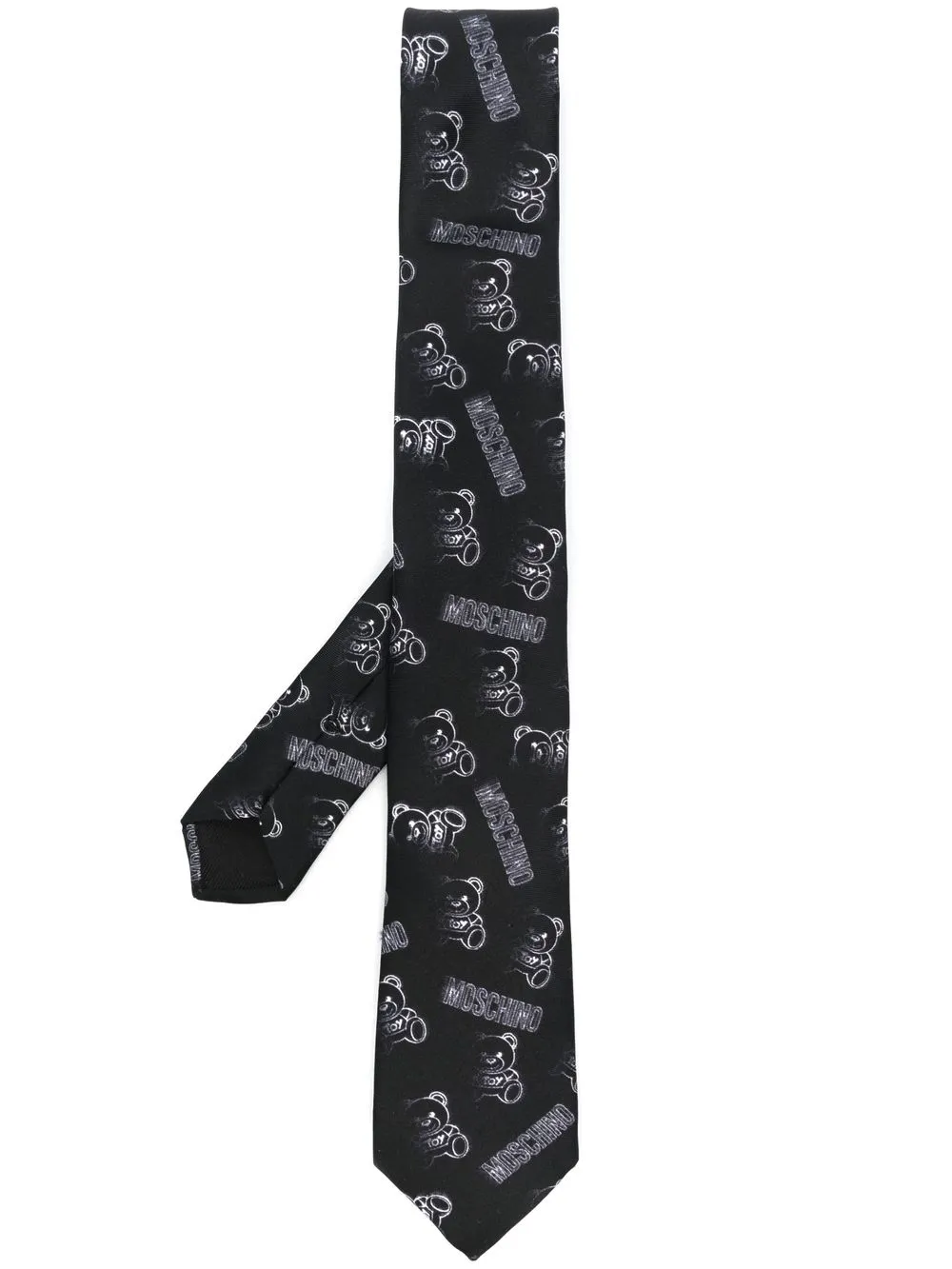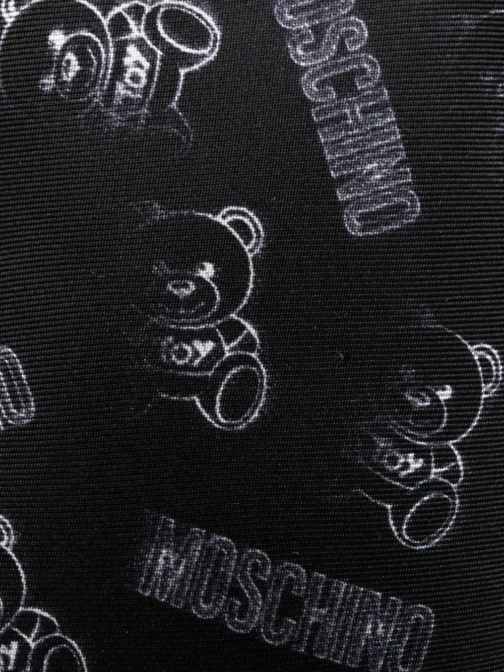 Negro carbón, seda, motivo Teddy Bear característico, estampado del logo en toda la pieza, extremo en punta, diseño largo y diseño ajustable.