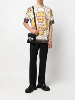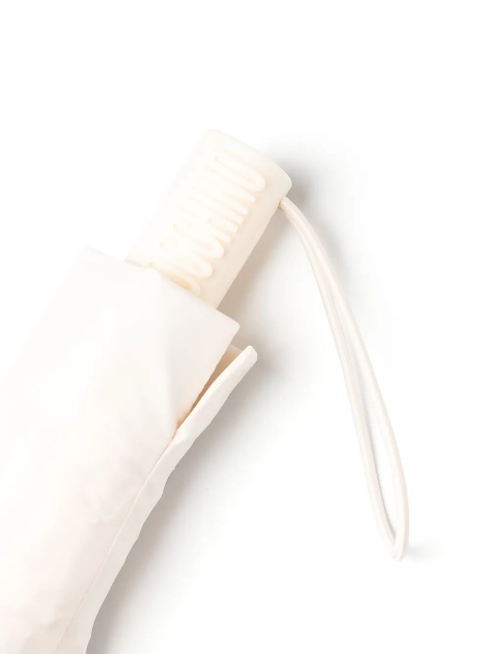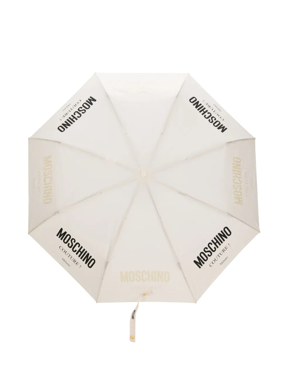 logo-print compact umbrella from MOSCHINO featuring off-white, logo print to the front, debossed logo to the front, waterproof, wrist strap and slipcase.