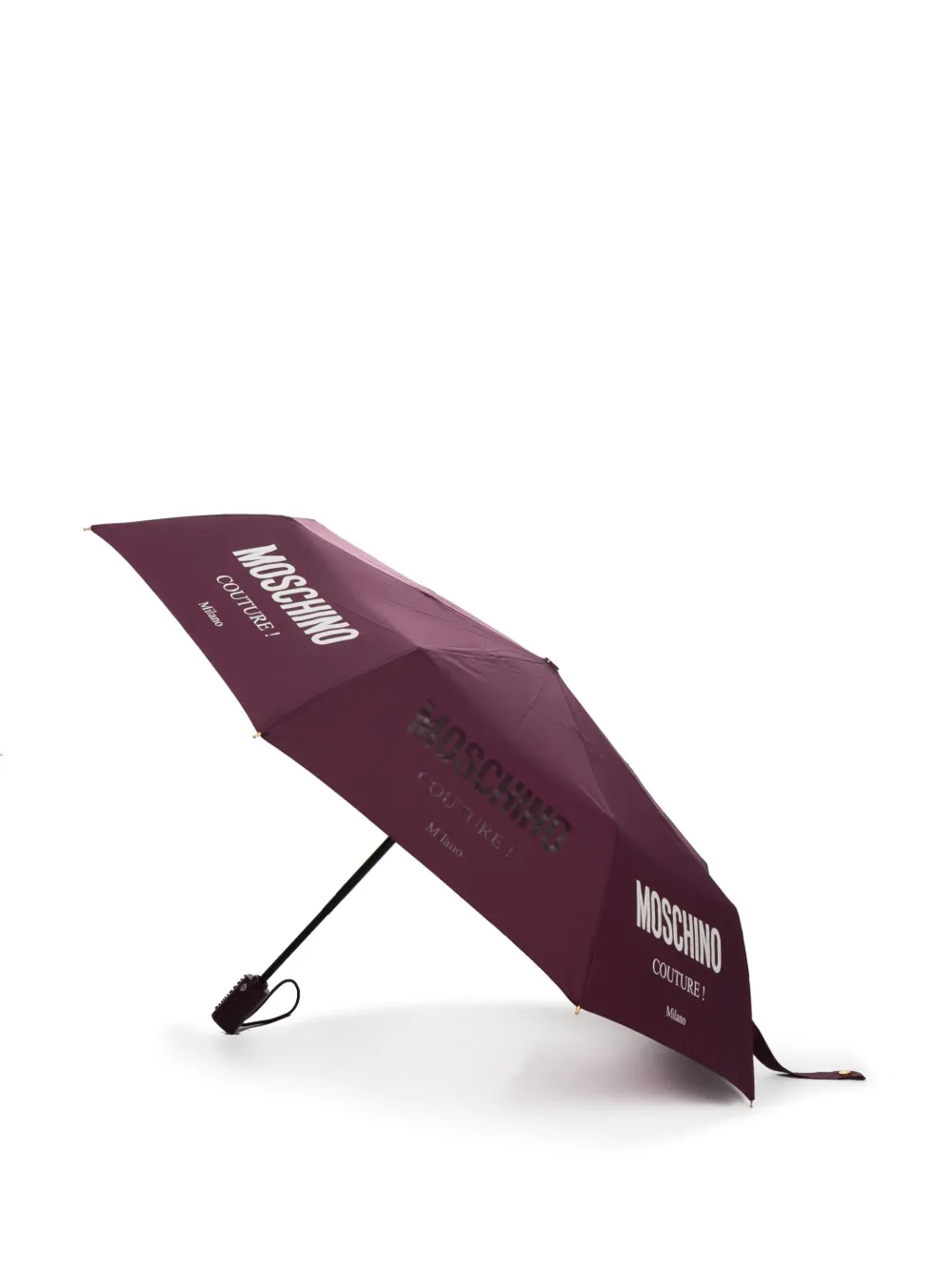 logo-print compact umbrella from MOSCHINO featuring burgundy, logo print to the front, debossed logo to the front, waterproof, wrist strap and slipcase.