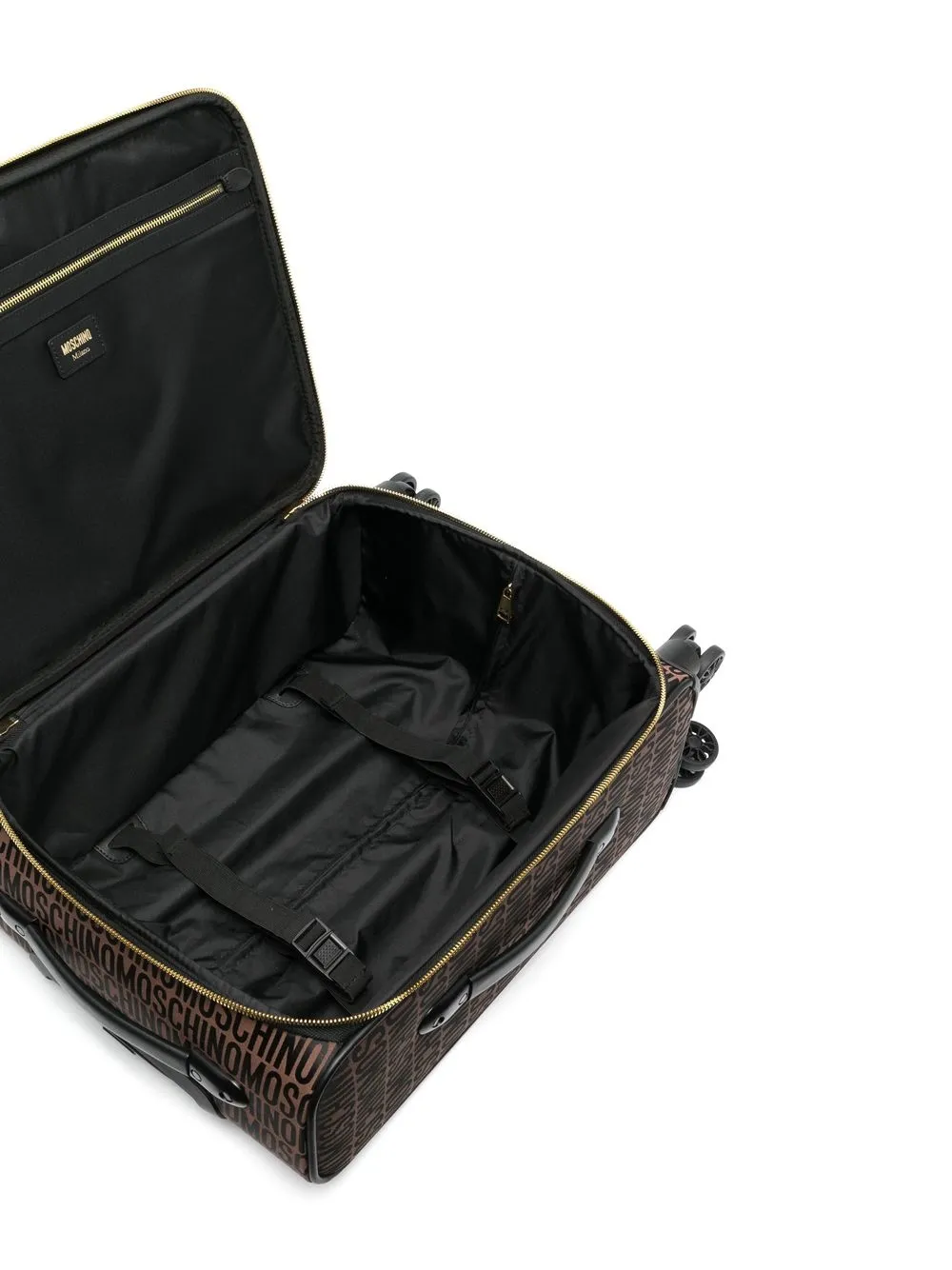 Estampado del logo en toda la pieza, etiqueta para equipaje, doble lengüeta en la parte delantera, cierre con cremallera en el contorno, cierre con candado, asa extensible, asa plana en la parte superior, asa lateral plana, bolsillo con cremallera en la parte delantera, bolsillo interno con cremallera, compartimento principal y cuatro ruedas.
