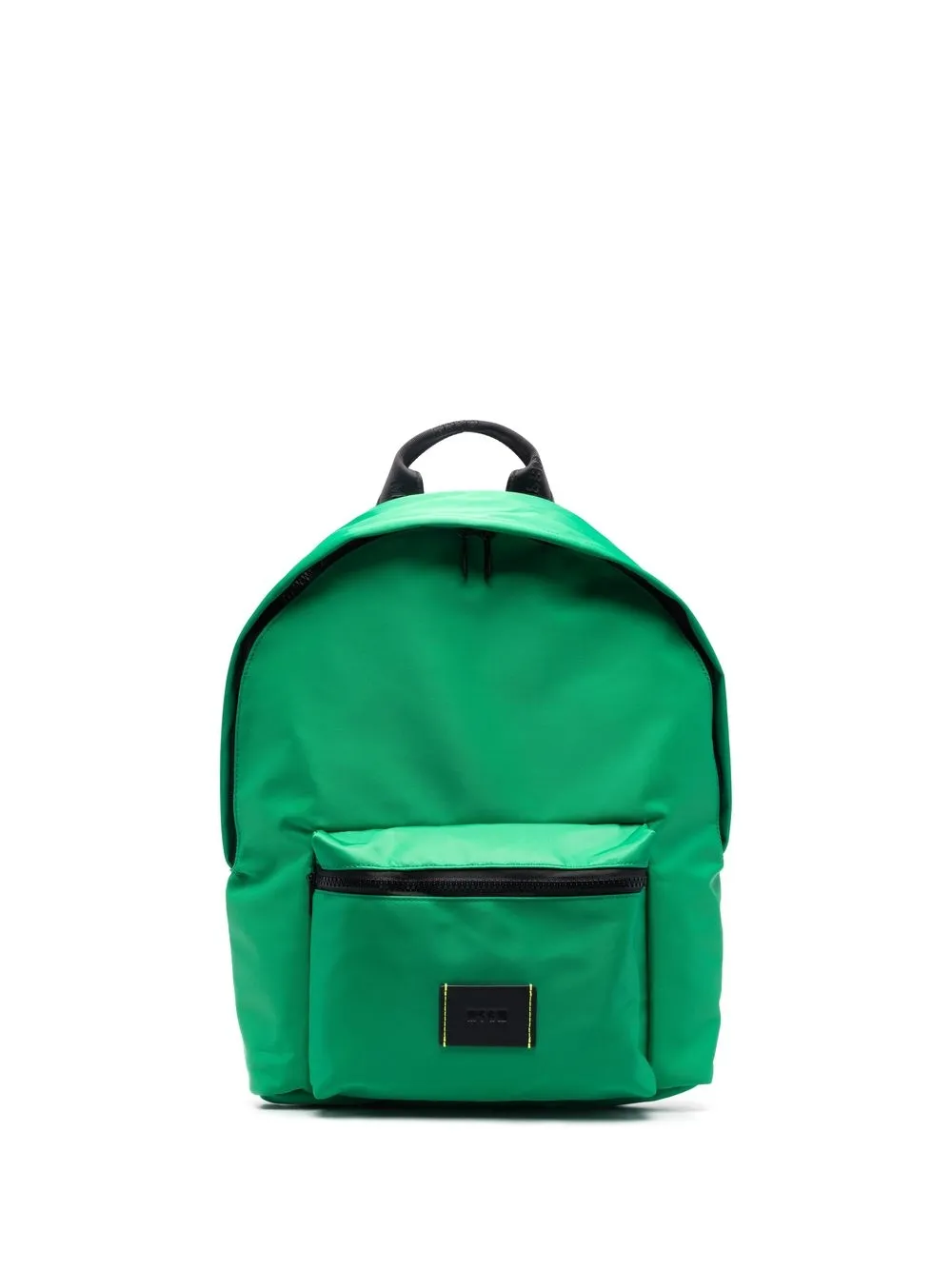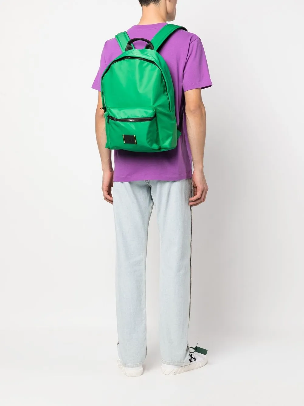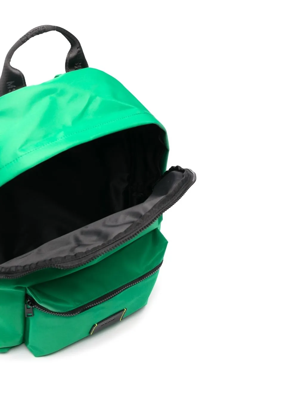 Verde jade, negro, parche del logo en la parte delantera, costura en contraste, cierre con cremallera en el contorno, dos correas acolchadas ajustables para los hombros, asa en la parte superior, compartimento principal y bolsillo con cremallera en la parte delantera.