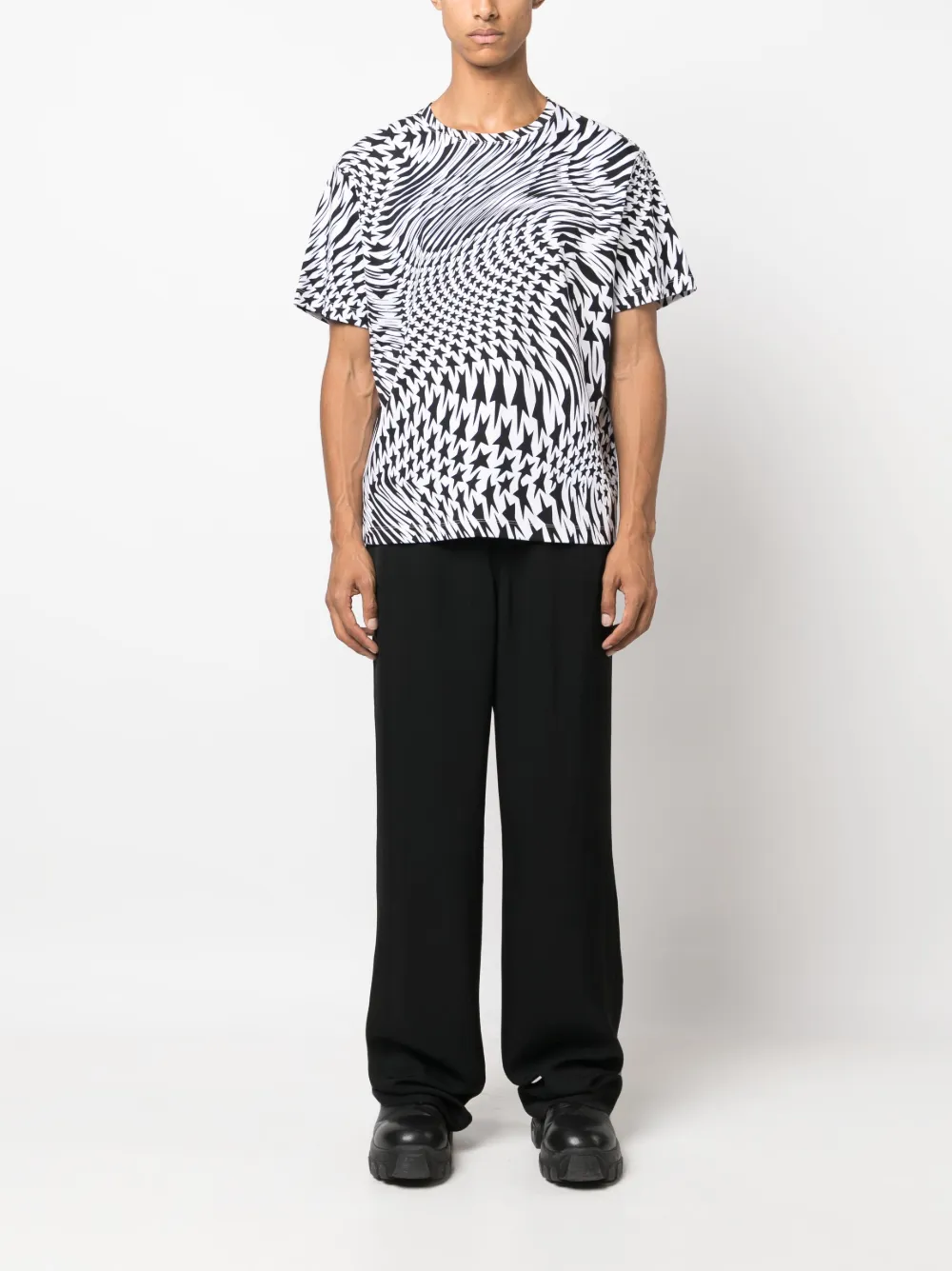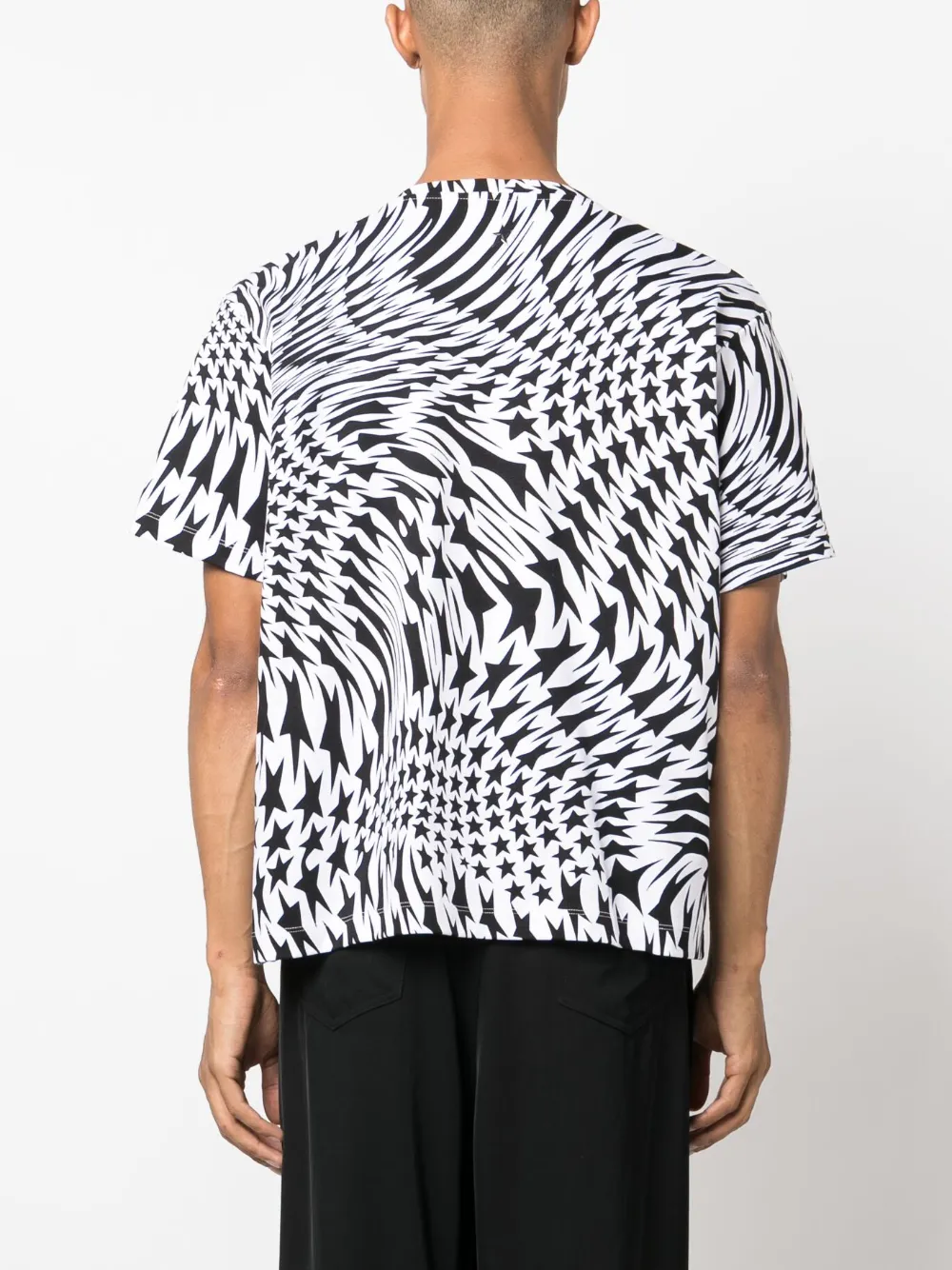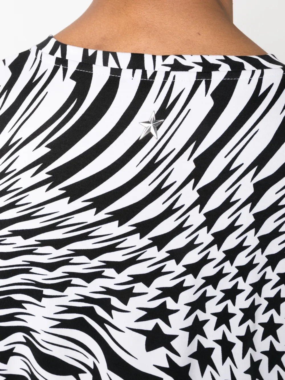 Algodón, estampado de estrella, cuello redondo, manga corta y dobladillo recto.