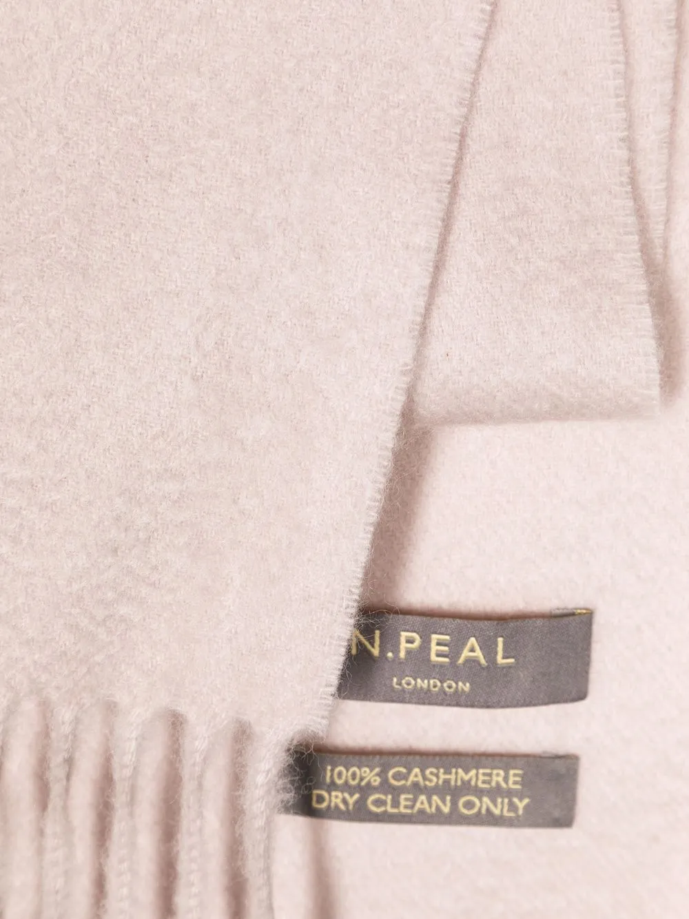 Rosa blush, cachemira, estructura de punto, punto fino, borde con flecos y estilo cruzado.