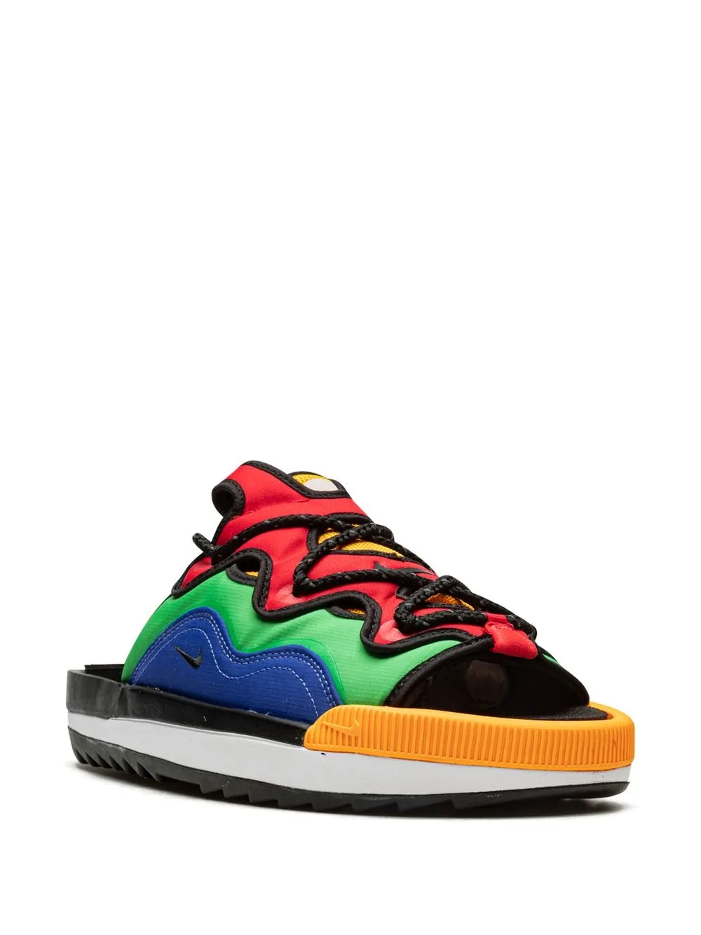 Multicolor, diseño de paneles, detalle del logo Swoosh, puntera abierta, puntera redonda, estilo slip-on